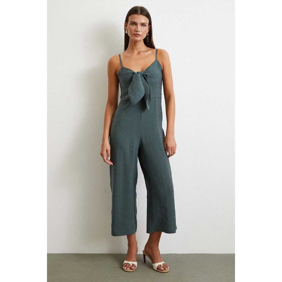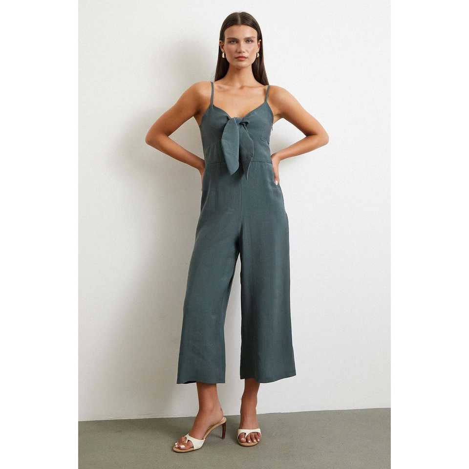 จั๊มสูทสายเดี่ยวเอวสูงสไตล์มินิมอลสีเขียวแบบไม่มีแขนสำหรับผู้หญิงสไตล์ชีวิตประจำวัน