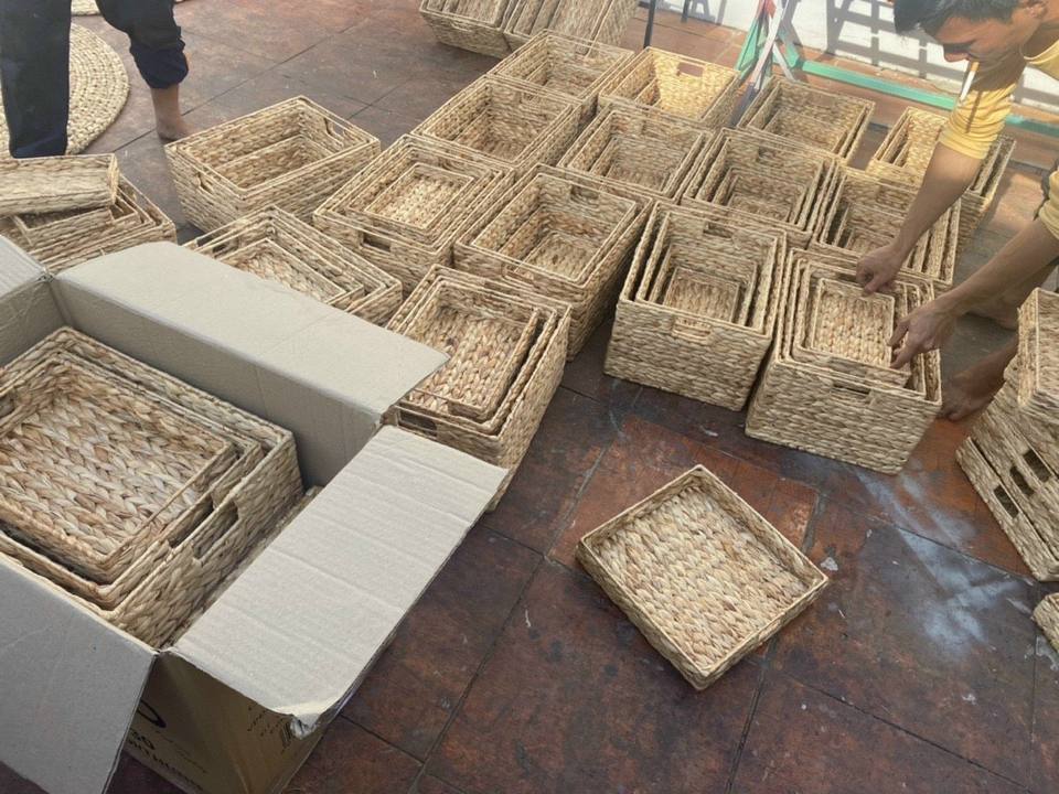 ถาดเก็บของผักตบชวาสไตล์มินิมอลที่ได้แรงบันดาลใจจากสแกนดิเนเวียนตะกร้าเส้นใยธรรมชาติออแกไนเซอร์ที่มีสไตล์ใช้งานได้จริงในเวียดนาม