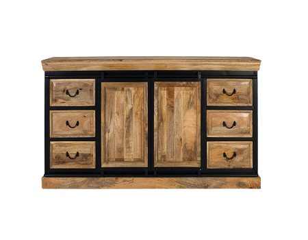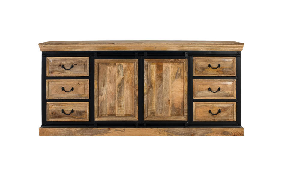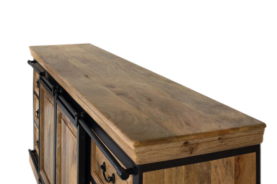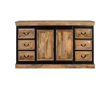 ตู้ไซด์บอร์ดไม้มะม่วงสไตล์มินิมอล อินดัสเทรียล โมเดิร์น โครงเหล็กสีดำ ตู้เก็บของสำหรับเฟอร์นิเจอร์บ้าน