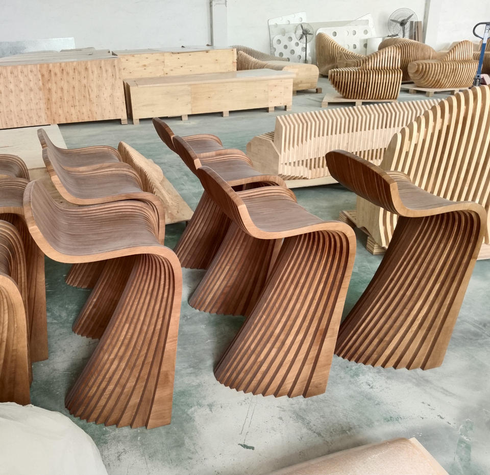 เก้าอี้บาร์โค้งสไตล์โมเดิร์นแบบมินิมอล ทำจากไม้แผ่นเดียว สำหรับพื้นที่ทำงานร่วมกัน โฮมออฟฟิศ โรงแรม และโรงอาหาร