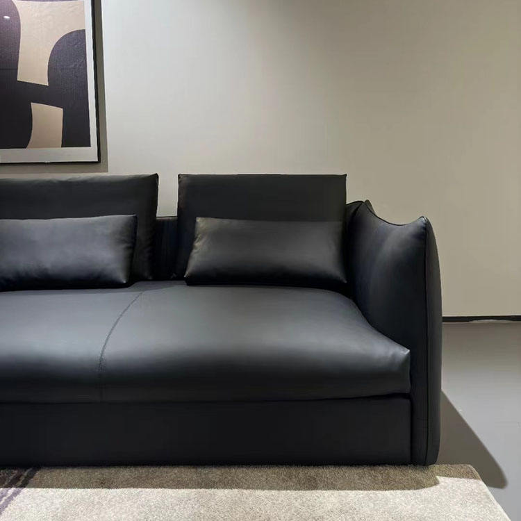 ชุดโซฟาหนังสีดำหรูหราแบบมินิมอลจากอิตาลีชุดโซฟา5ที่นั่งขนาดกว้างและลึก