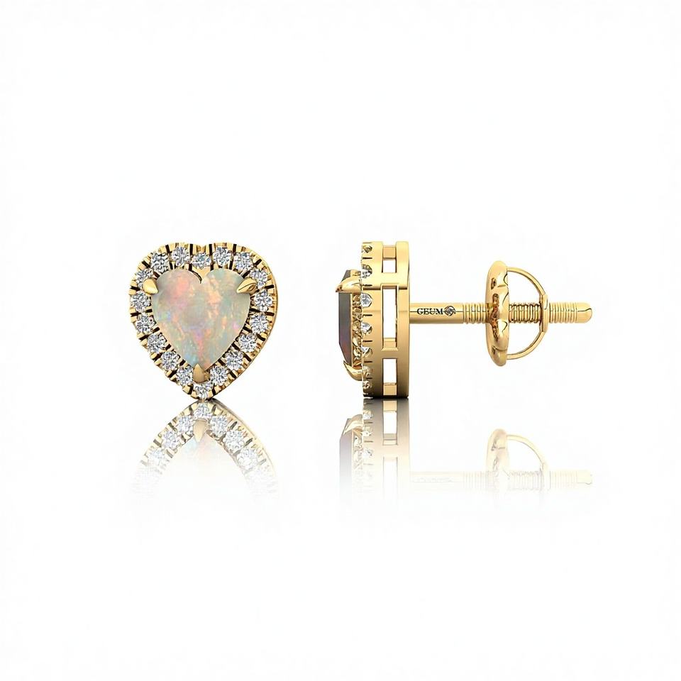 เครื่องประดับที่เรียบง่ายต่างหูอัญมณีโอปอลจากเอธิโอเปียธรรมชาติต่างหูทองคำขาว18K ทำด้วยมือเครื่องประดับเพชรชั้นดี