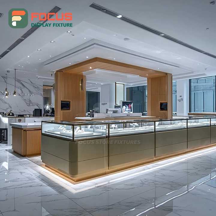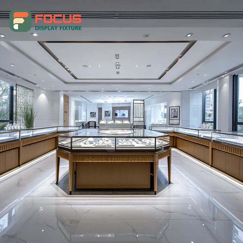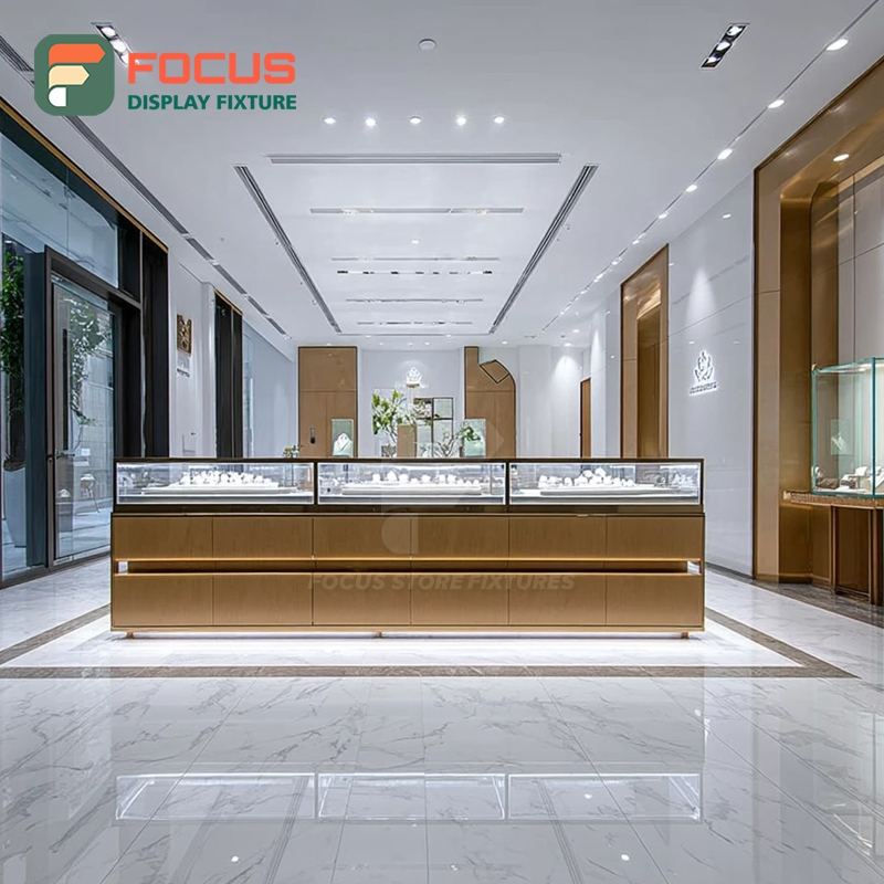 ระบบโชว์รูมขายเครื่องประดับแบบมินิมอล พร้อมเคาน์เตอร์โชว์สินค้าเคลือบผิวสำหรับร้านขายเครื่องประดับ