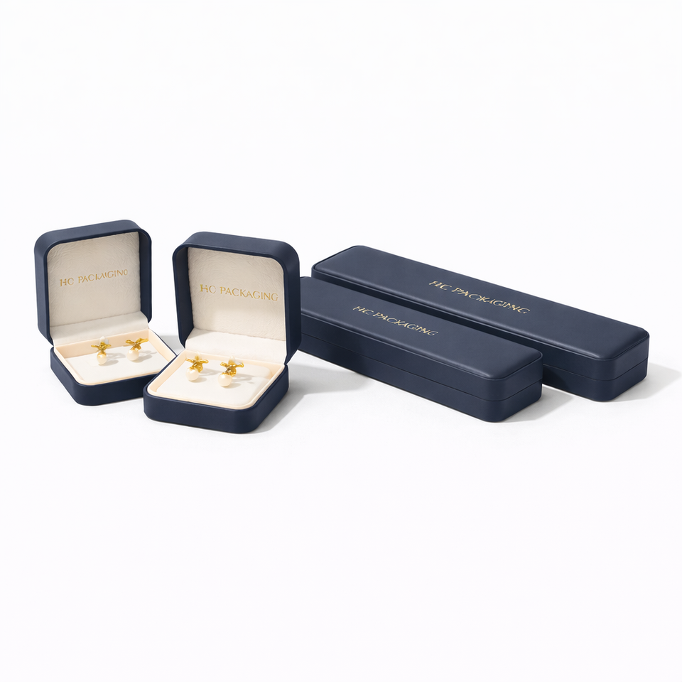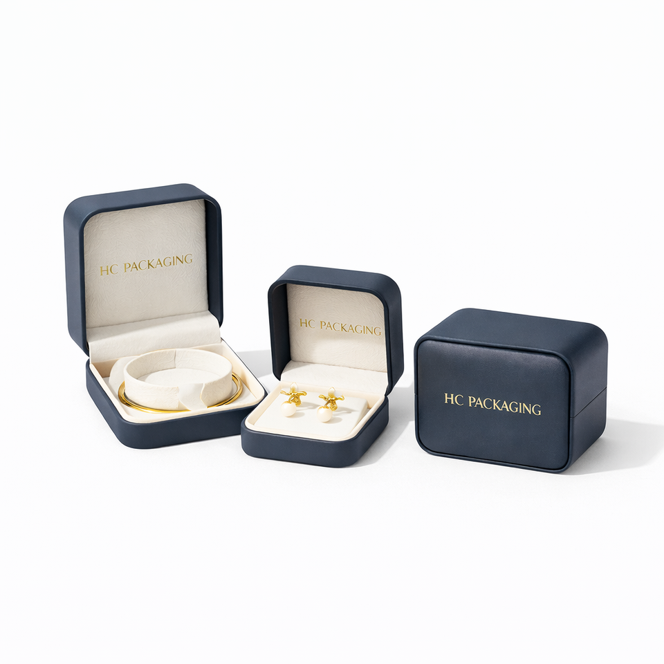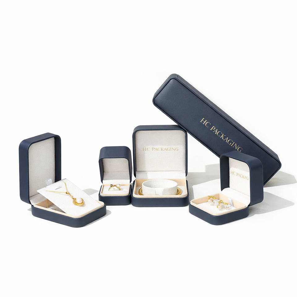 กล่องใส่เครื่องประดับแบบมินิมอล กล่องโชว์เครื่องประดับหนัง PU แข็งหรูหรา พร้อมบุผ้ากำมะหยี่ ปั๊มฟอยล์ โลโก้สั่งทำ ขายส่ง