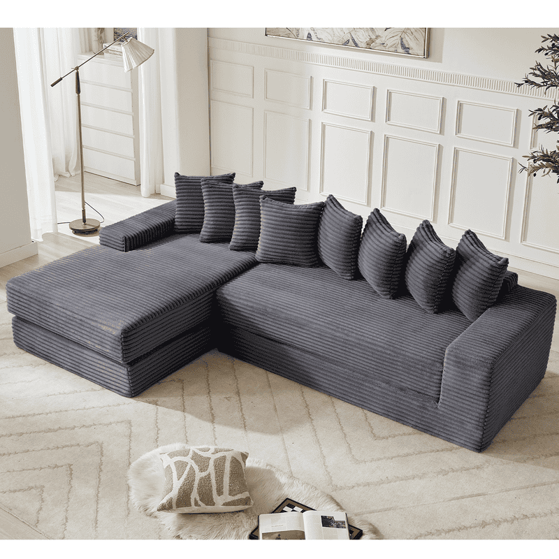 โซฟาแบบแบ่งส่วนรูปตัว L แบบเรียบง่ายโซฟาหุ้มผ้าโพลีเอสเตอร์สำหรับห้องนั่งเล่นโรงแรมห้องพัก