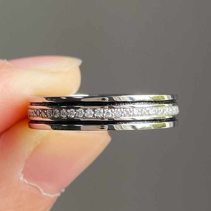 แหวนเพชรเม็ดเล็กแบบเรียบง่าย แหวนแต่งงานแบบซ้อนสองแถว แพลตตินั่ม สำหรับผู้หญิงและผู้ชาย เครื่องประดับชั้นดี