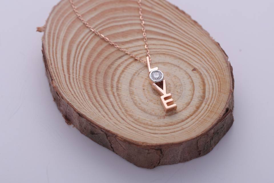 จี้รูปตัวอักษรเรียบง่าย สื่อถึงความรัก ทำจากทองคำ 9K สีโรสโกลด์/เหลือง/ขาว สร้อยคอสำหรับผู้หญิง