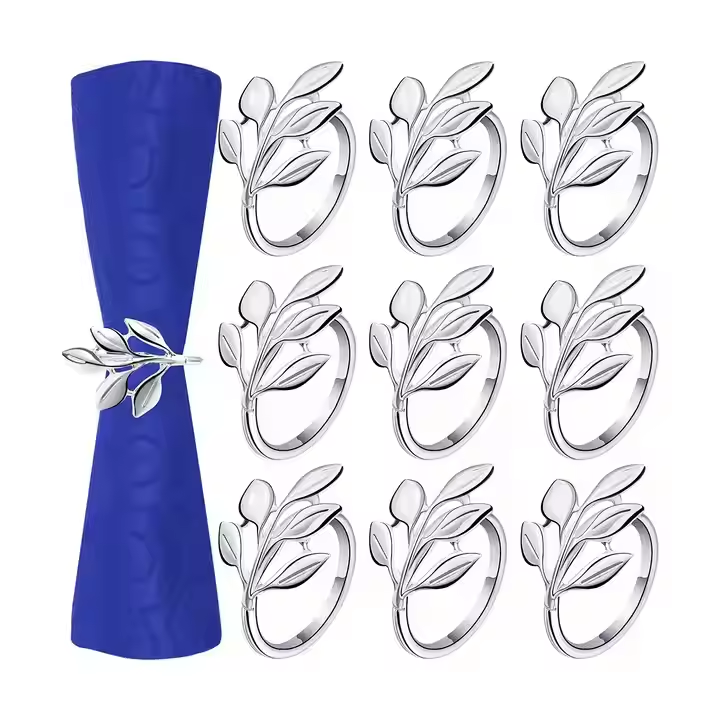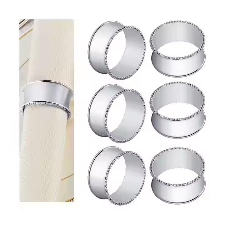 แหวนรองผ้าเช็ดปากโลหะแบบมินิมอลที่ต้องการการตกแต่งงานทำมือมากที่สุดชุบเงิน