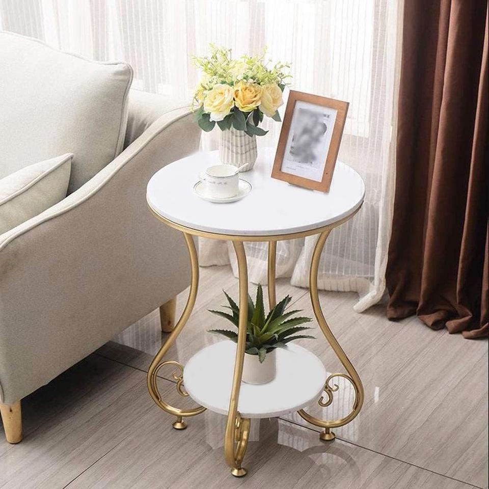 โต๊ะข้างโลหะหินอ่อนแบบดั้งเดิม เฟอร์นิเจอร์ห้องนั่งเล่นสไตล์โบราณ สำหรับตกแต่งร้านกาแฟ พื้นที่นั่งเล่นในสำนักงาน และจัดวางของว่าง