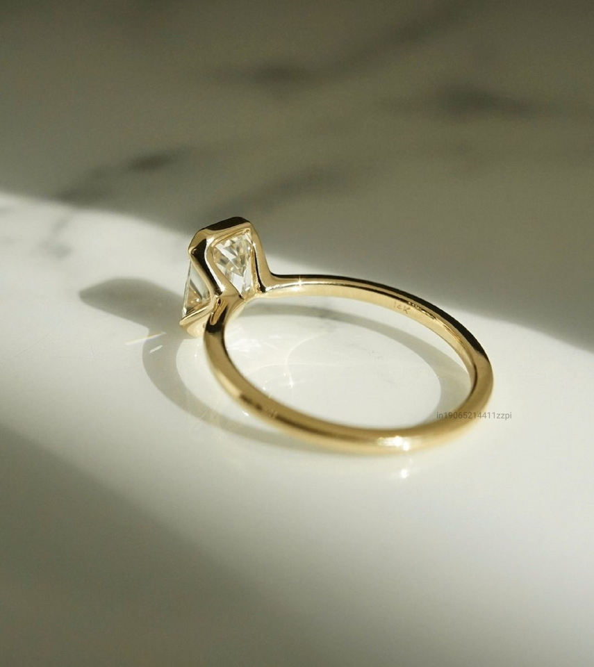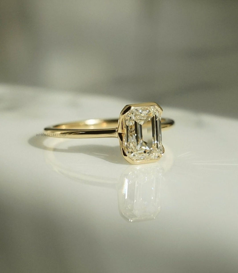 แหวนเจ้าสาวสุดหรูแบบเรียบง่ายทันสมัยแหวน925สีเงินสเตอร์ลิงหรือสีทองชุดแหวนโซลิแทร์ทรงยาวตัดสีมรกต