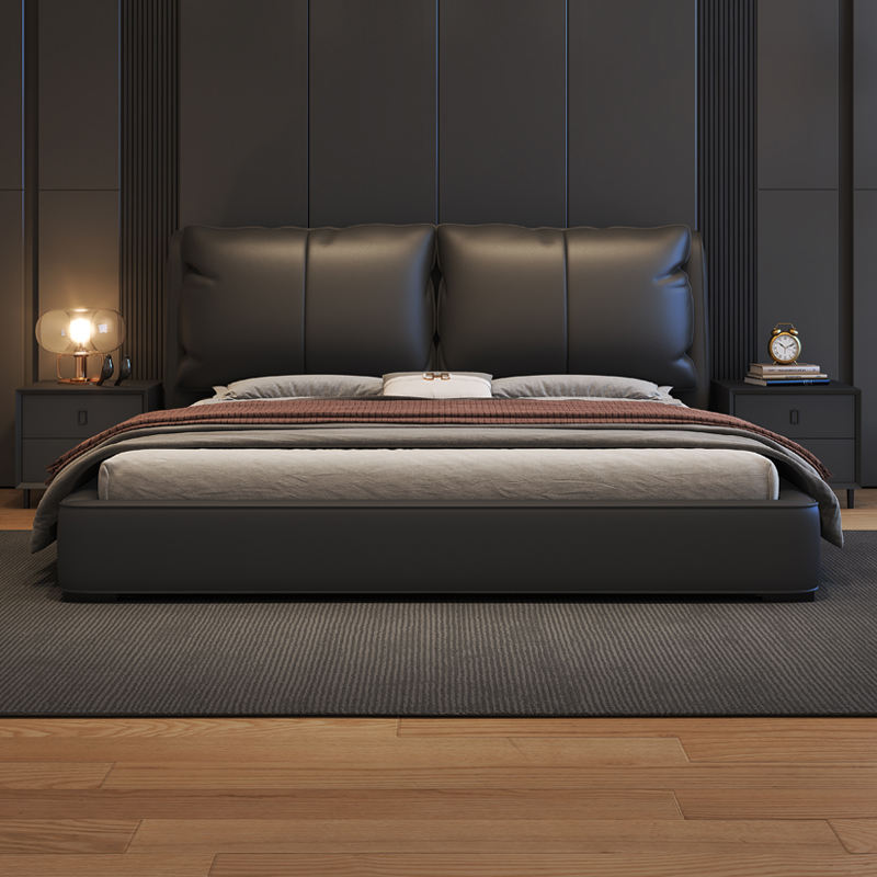 Minimalist Modern Luxury Wood Bedroom Up-holstered Beds king Size Double Soft Bed Frame Set with Storage Marriage Simple Designs