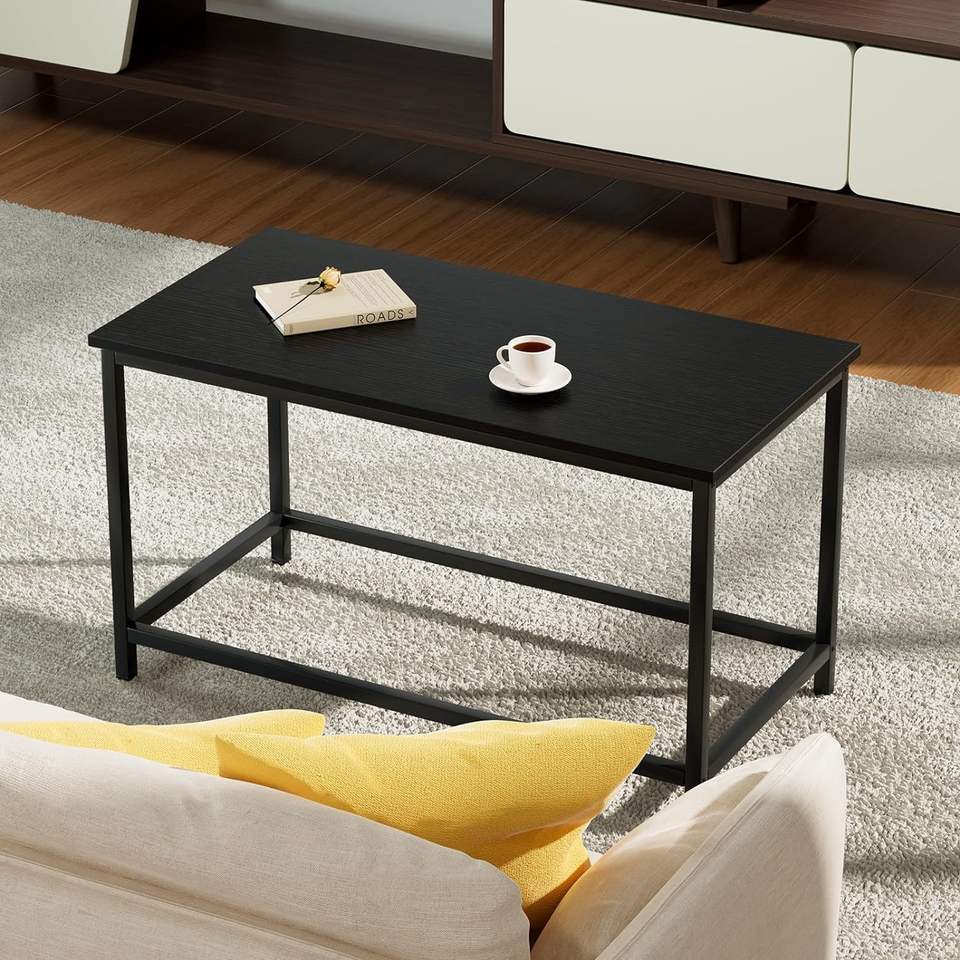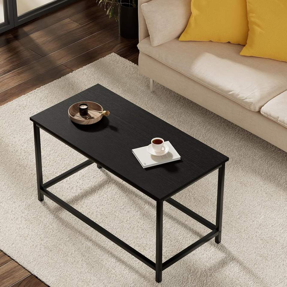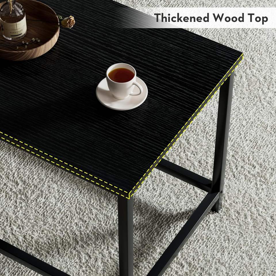 โต๊ะกาแฟทรงสี่เหลี่ยมสไตล์โมเดิร์นมินิมอล ท็อปเคลือบสีดำ โต๊ะกลางห้องนั่งเล่นสไตล์อินดัสเทรียล
