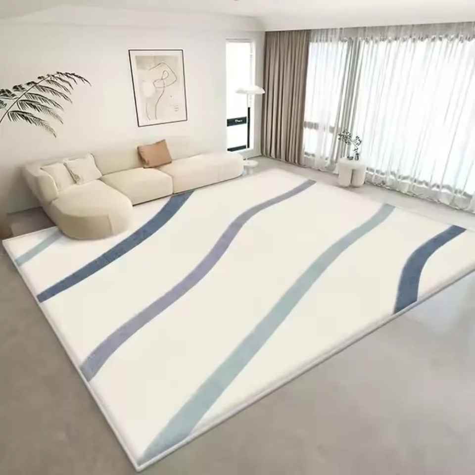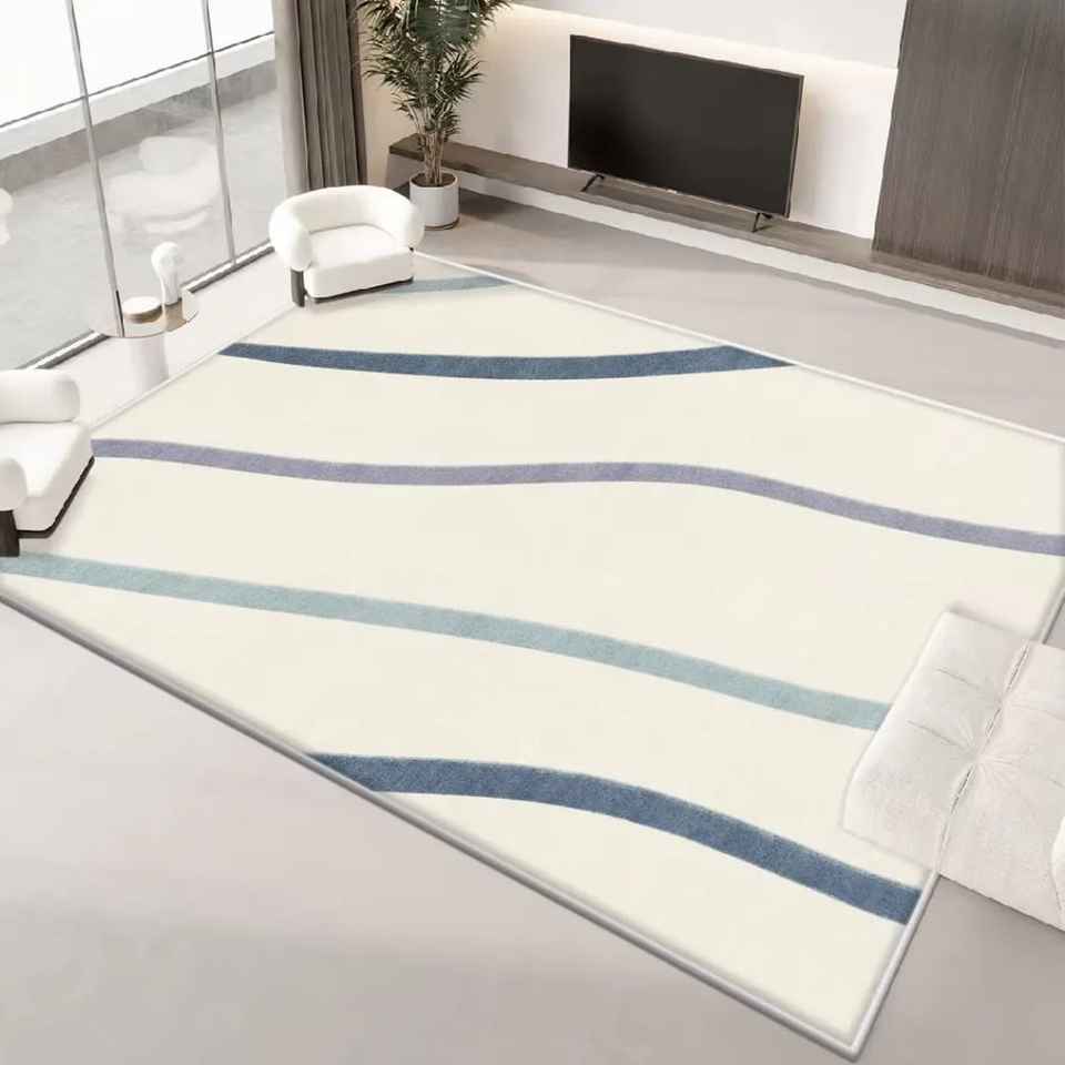 Minimalist Modern Rug White Area Carpet with Blue Wave Stripes Contemporary Living Room Floor Rug Scandinavian Style Home Decor