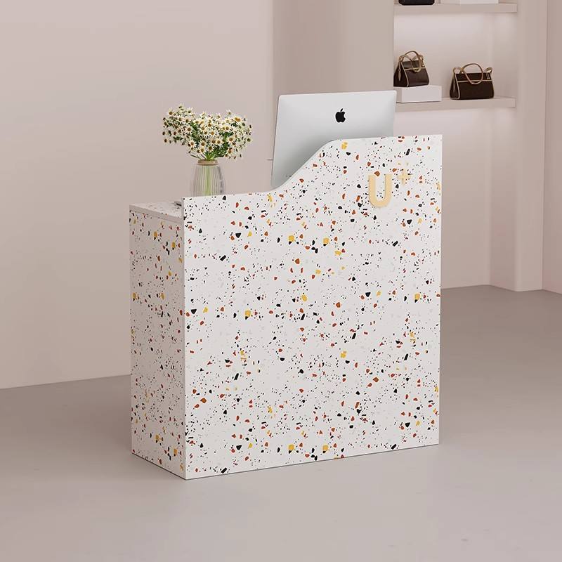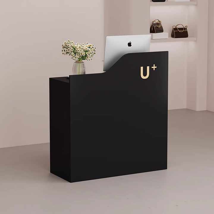 โต๊ะแคชเชียร์คลินิกขนาดเล็กสไตล์มินิมอลโมเดิร์น โต๊ะรับแขกสีดำขนาดเล็กสำหรับร้านเสริมสวย เคาน์เตอร์แคชเชียร์บูติก โต๊ะประชาสัมพันธ์