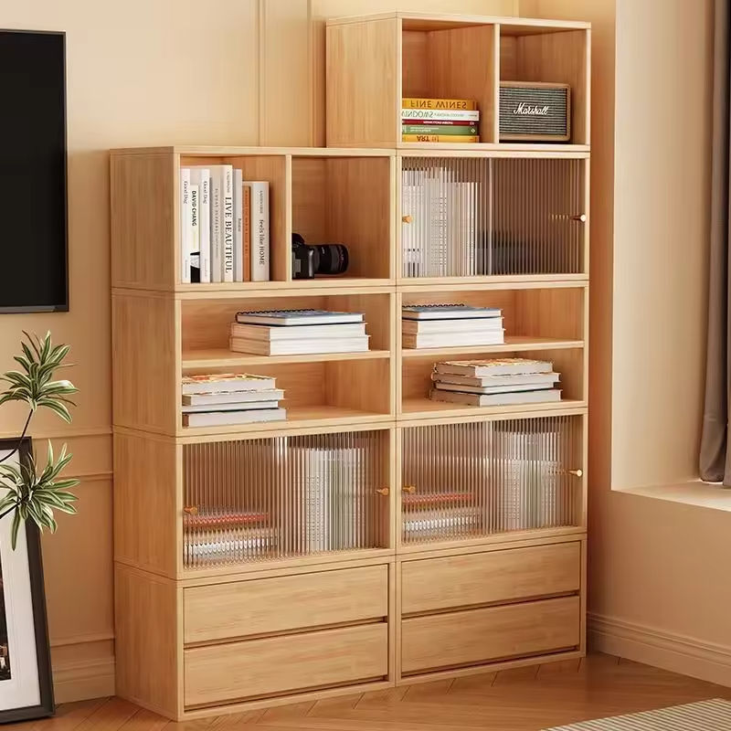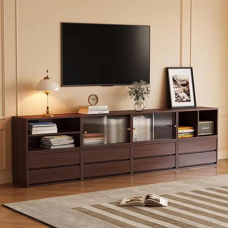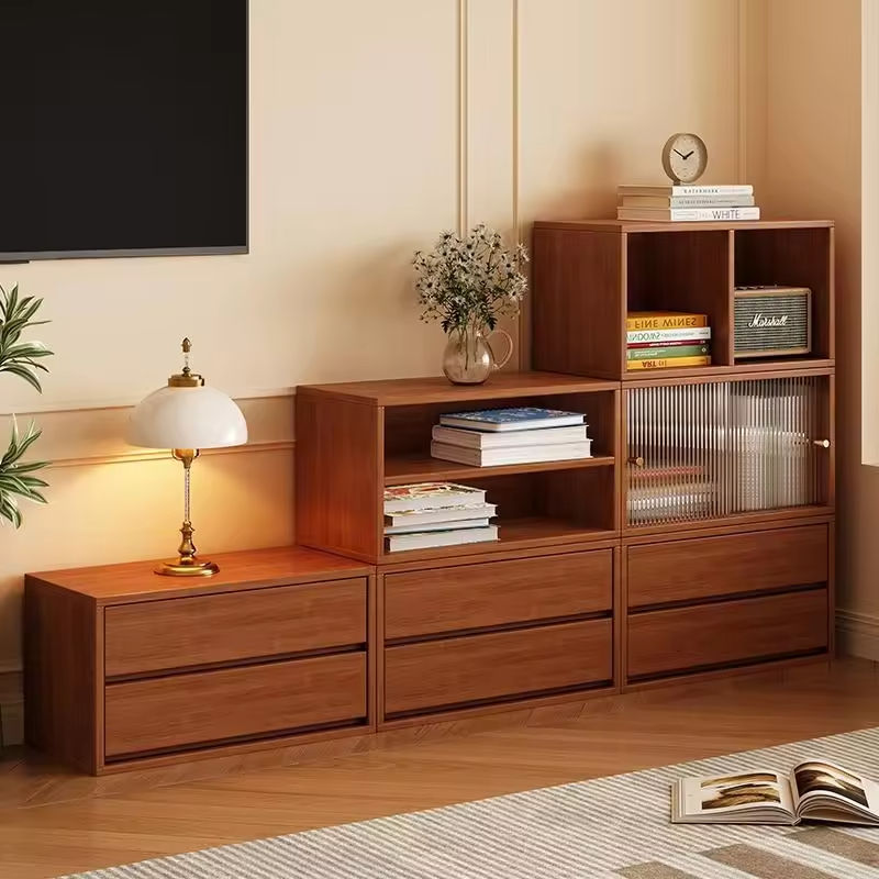 ตู้ไม้จริงแบบโมดูลาร์มินิมอล รักษ์โลก ทนทาน ประตูกระจกแบบริบบิ้น 5+ ลิ้นชัก สำหรับบ้านสมัยใหม่ ห้องนั่งเล่น โรงแรม