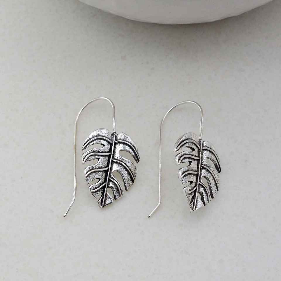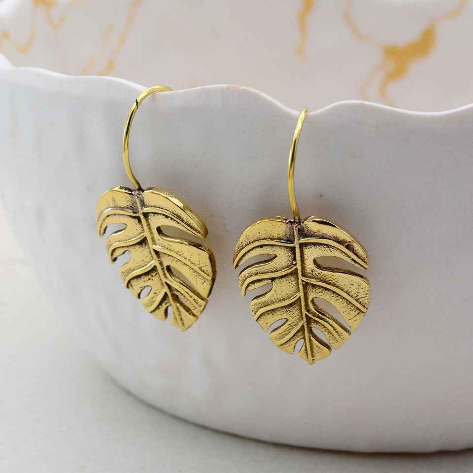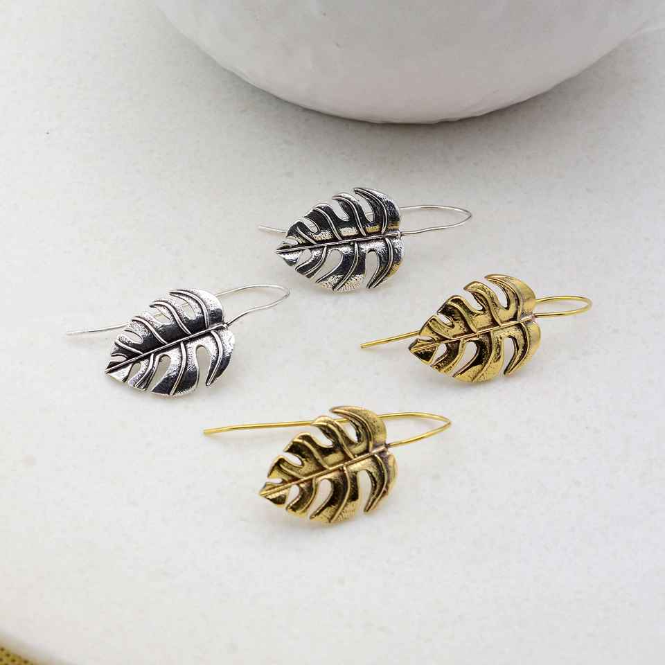 ต่างหูห้อย Monstera สีทองห้อยห้อยระย้าแบบเรียบง่ายของต้นไม้เครื่องประดับเงินสเตอร์ลิง