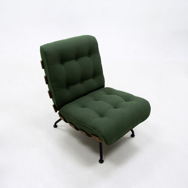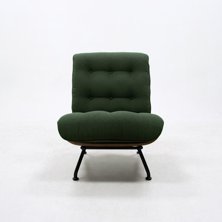 เก้าอี้พักผ่อนสไตล์มินิมอลสำหรับห้องนอน บ้าน บาร์ ห้องนั่งเล่น สำนักงาน โรงแรม หุ้มด้วยผ้า ขาโลหะ โซฟาเดี่ยวแบบเอนนอน