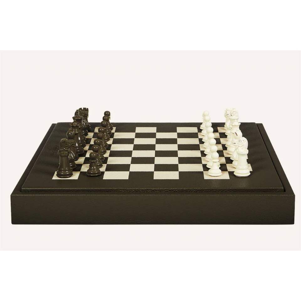 ชุดหมากรุกสไตล์นอร์ดิกแบบมินิมอล กระดานหนังเทียมคุณภาพสูงพร้อมที่จัดเก็บภายในทำจากไม้ ของตกแต่งบนโต๊ะ เกมกลยุทธ์บนโต๊ะ ชุดหมากรุก