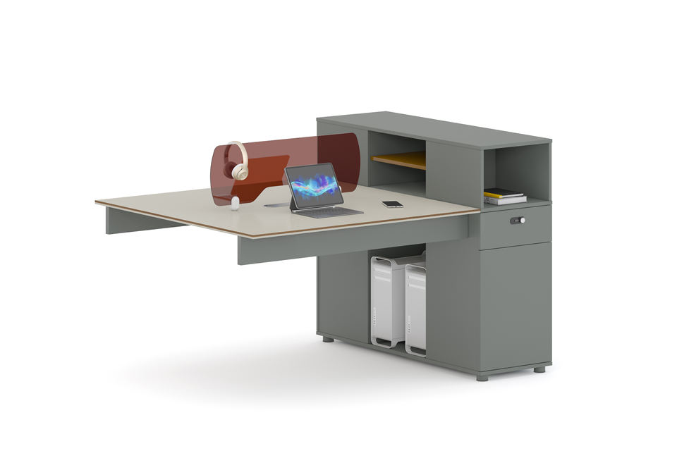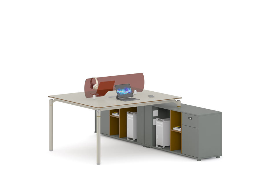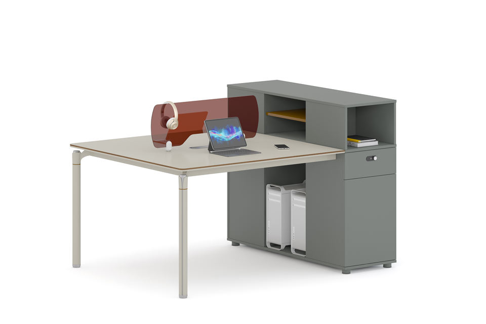 สถานีงานแบบเปิดโล่งสไตล์มินิมอล, โต๊ะทำงานสำหรับพนักงานหลายคน, หน้าโต๊ะกันน้ำเรียบเนียน, ทำความสะอาดและดูแลรักษาง่าย