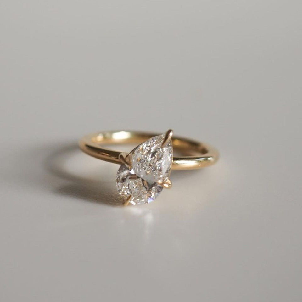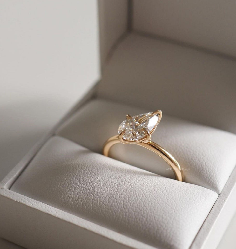 แหวนหมั้นเพชรมอสซาไนต์ทรงลูกแพร์สุดหรูสีทอง18K สำหรับผู้หญิง