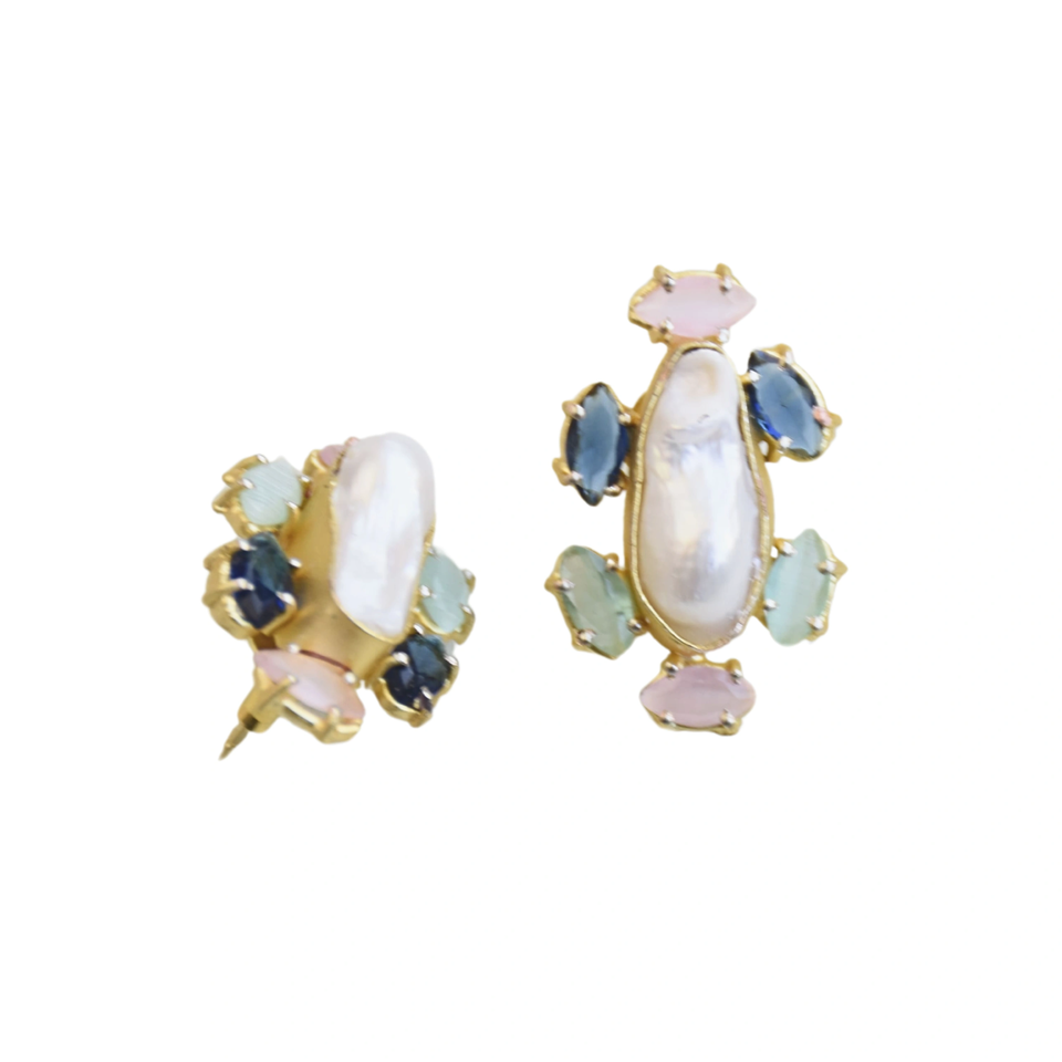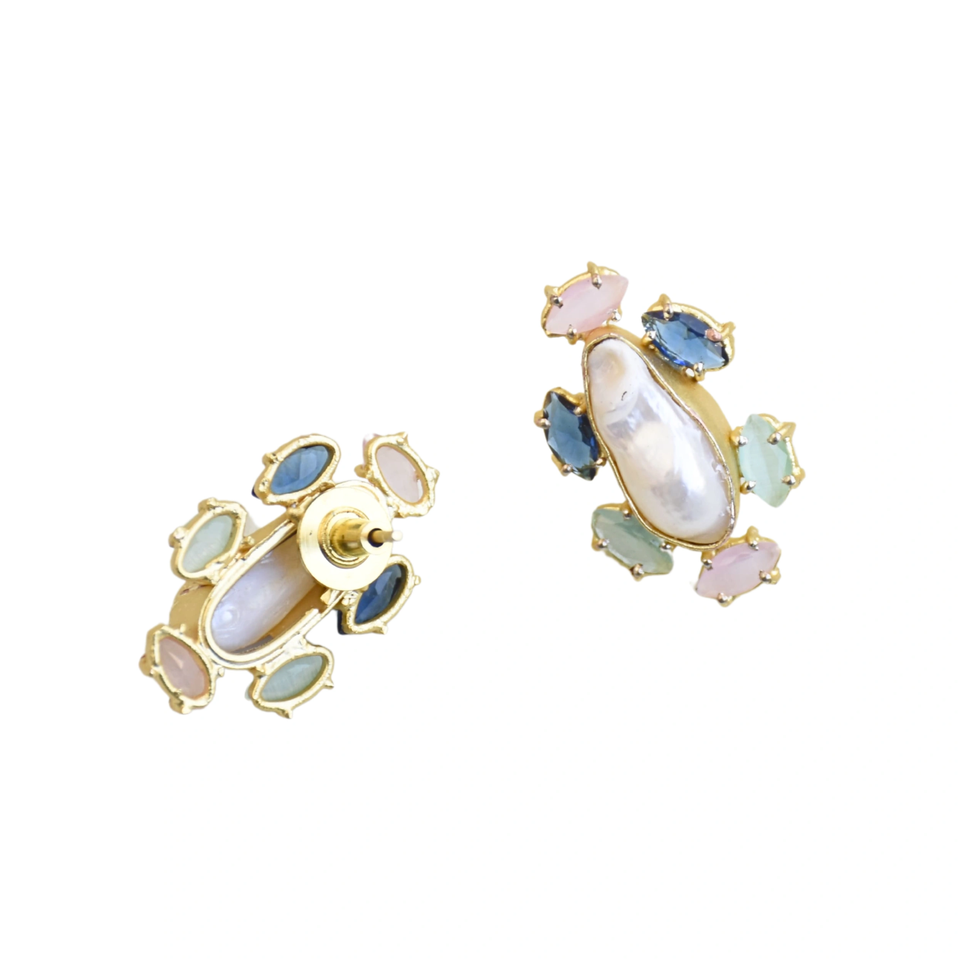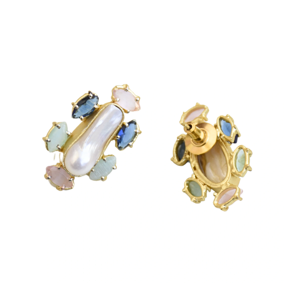 Minimalist Pearl Stud Earrings With Zircons - Handmade Fashion Jewelry for Wholesale Fashion Enthusiasts
