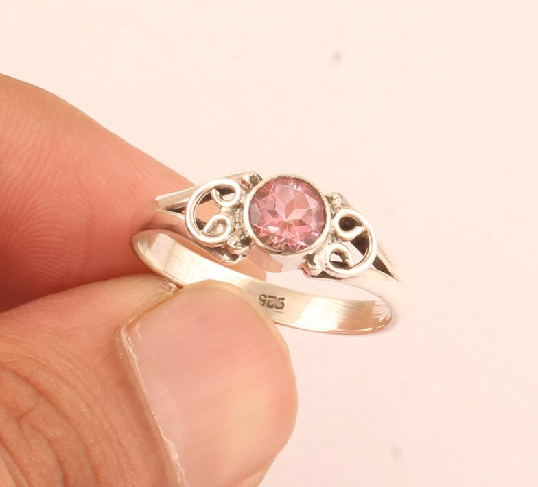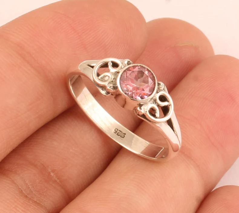 แหวนพลอยเพทายสีชมพูแบบมินิมอลแหวนแข็ง925เงินแท้แฮนด์เมดแหวนครบรอบแต่งงานออกแบบด้วยมือไอเดียของขวัญที่สวยงาม