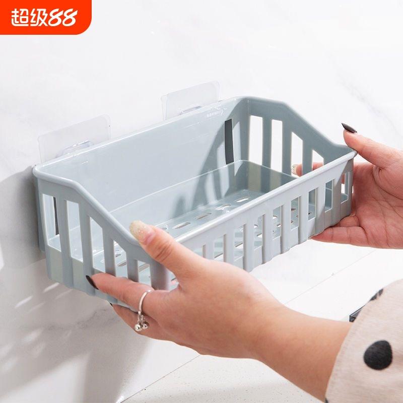 ชั้นวางของพลาสติกแบบมินิมอล 26X12X9 ซม. ตะกร้าเก็บของในครัวอเนกประสงค์ ติดผนัง ไม่ต้องเจาะ