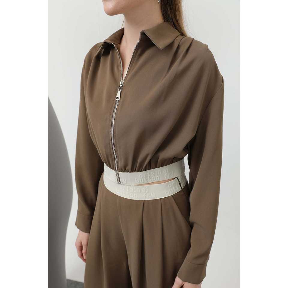 เสื้อแจ็คเก็ตมินิมอลแบบจีบ แขนยาว ผ้าทอเนื้อมิงค์ สำหรับผู้หญิง ฤดูใบไม้ร่วง