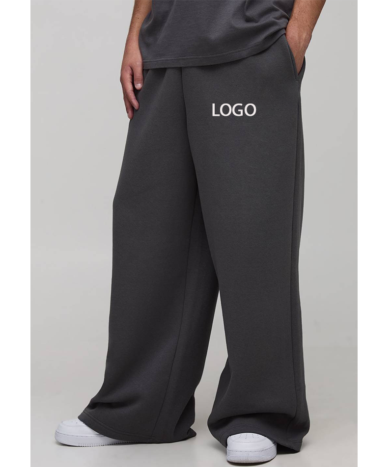 กางเกงขายาวทรงพลีทแบบมินิมอลสำหรับผู้ชาย ขายส่ง พิมพ์ลายสกรีนสไตล์วินเทจ ผ้าเฟรนช์เทอร์รี่เนื้อหนา เอวยางยืด