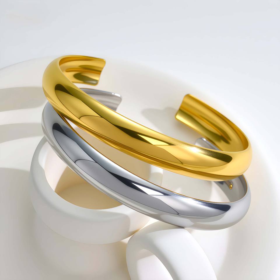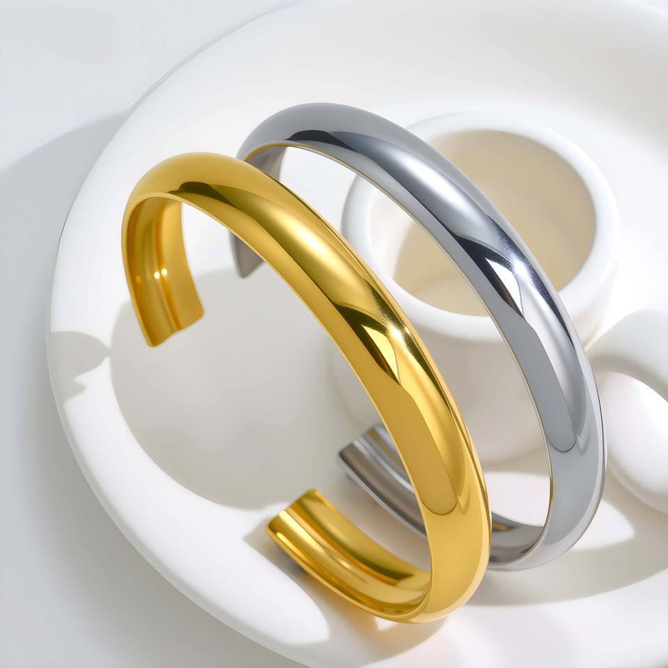 กำไลสแตนเลสแบบเปิดขัดเงามินิมอลเครื่องประดับสตรีชุบทอง18K สำหรับงานปาร์ตี้สไตล์ลำลอง/สปอร์ต