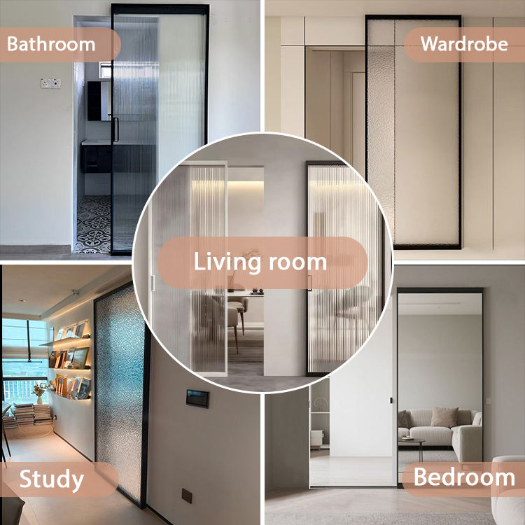 ประตูบานเลื่อนกระจกสไตล์มินิมอลโพสต์โมเดิร์น ดีไซน์ภายในเรียบหรู สำหรับบ้าน สำนักงาน ห้องนอน ห้องนั่งเล่น โกดัง อพาร์ตเมนต์