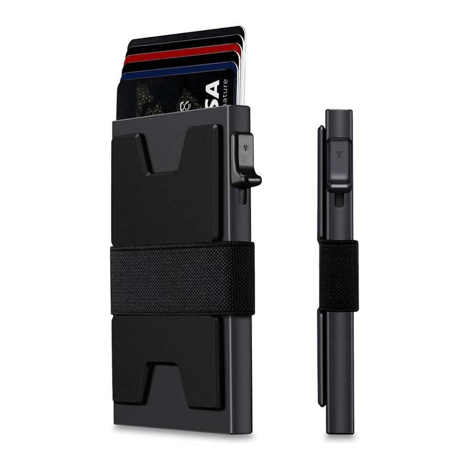 กระเป๋าสตางค์แบบมินิมอลพร้อมระบบป้องกัน RFID ช่องใส่บัตรด้านหน้าพร้อมสายรัดนิรภัย จัดเก็บบัตรและเงินสดได้หลายช่อง