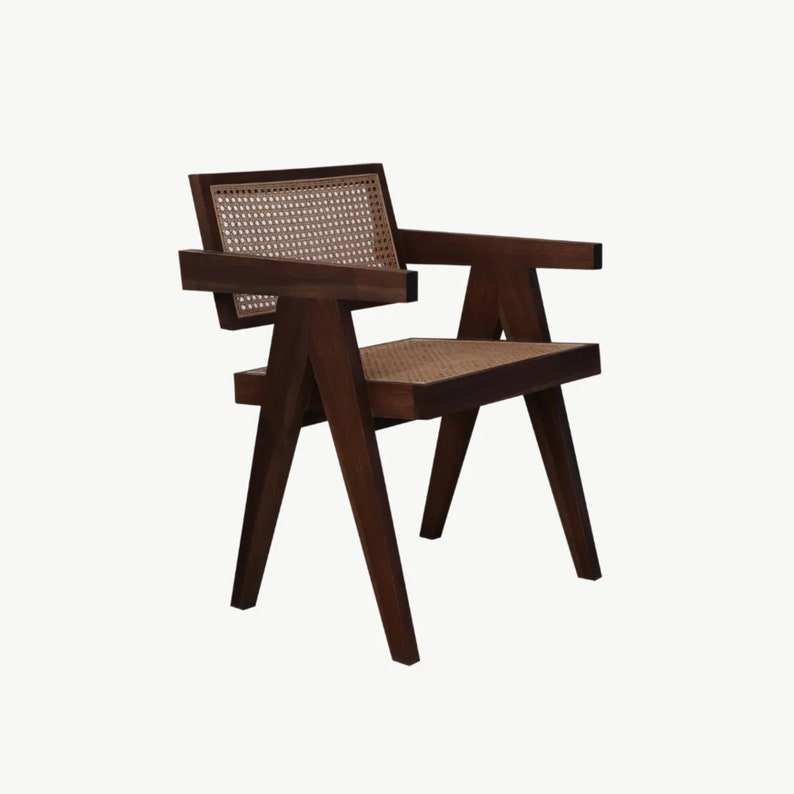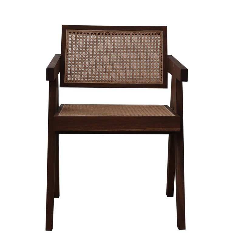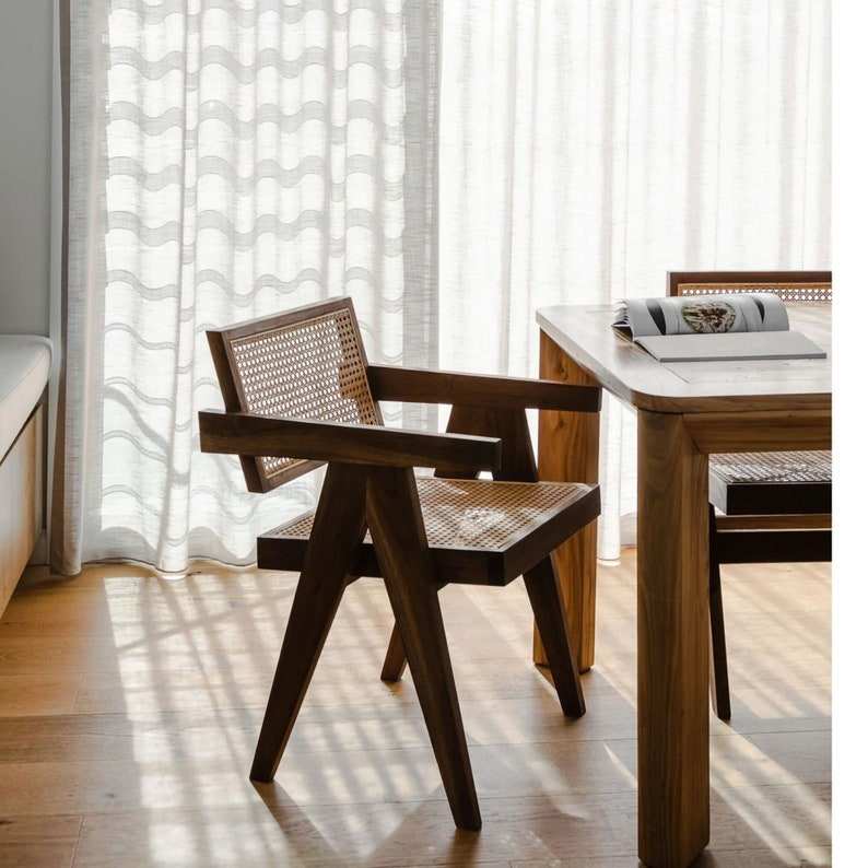 Minimalist Rattan Wood Dining Chair Solid Teak Wood Chair for Indoor and Outdoor Dining Chair
