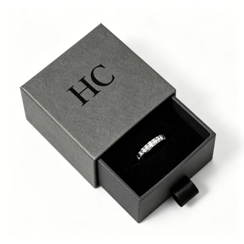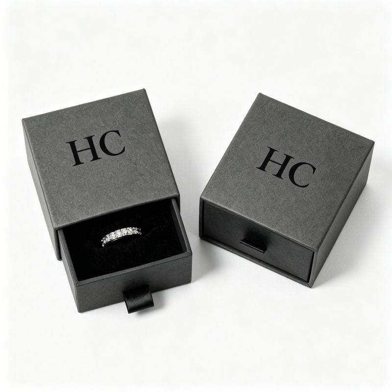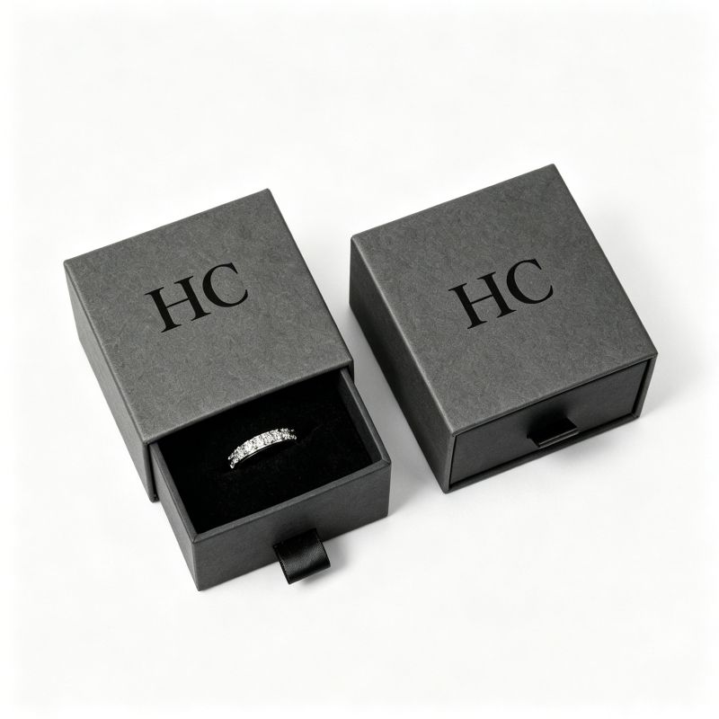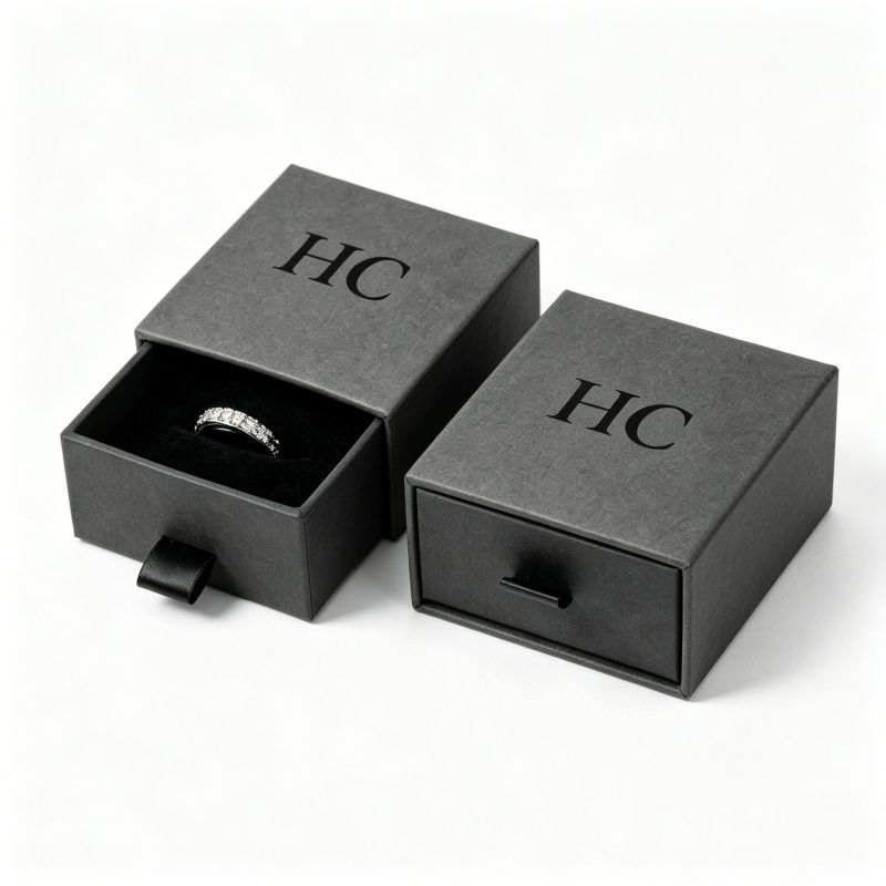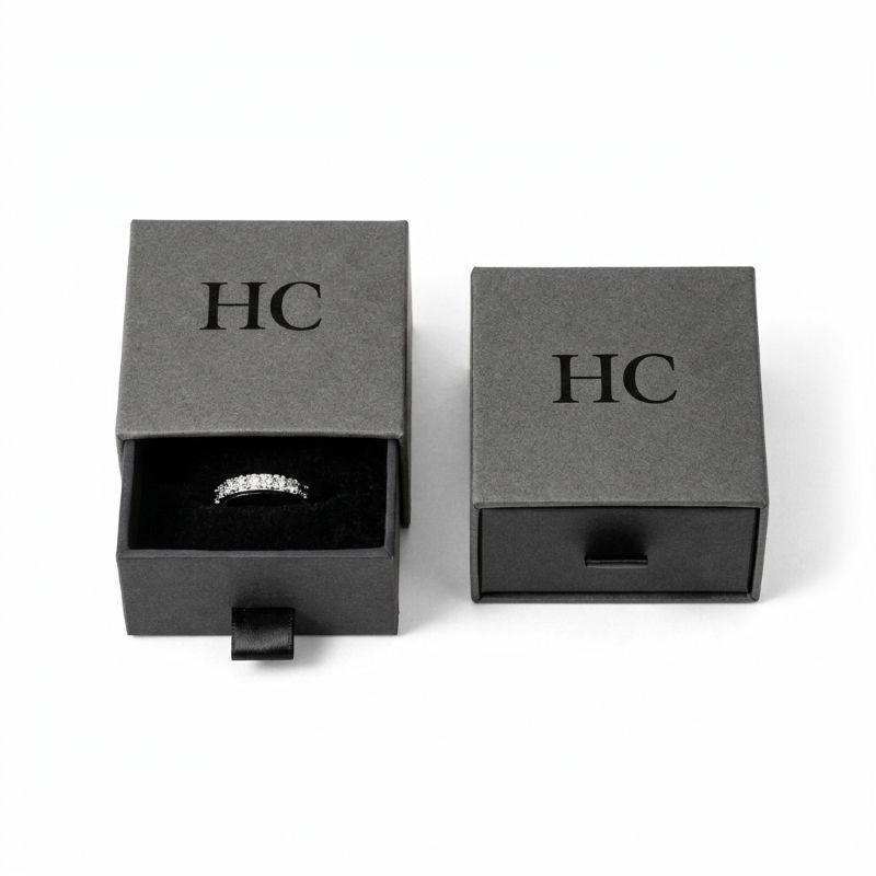 กล่องใส่แหวนแบบมินิมอล กล่องของขวัญเครื่องประดับแบบกำหนดเอง กล่องลิ้นชักแข็งพร้อมแผ่น EVA ปั๊ม Spot UV โลโก้ตามสั่งสำหรับแบรนด์เครื่องประดับ บริการ OEM