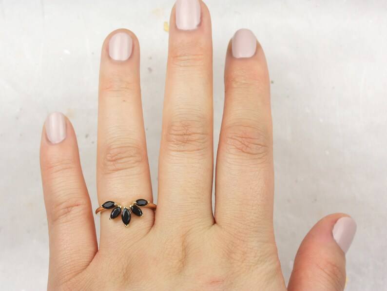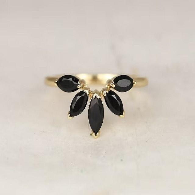 แหวนหมั้นดีไซน์เรียบหรูสไตล์โรแมนติก ประดับพลอยออนิกซ์สีดำทรงมาร์ควิส ตัวเรือนเงินแท้ 925 ชุบทอง 18K แบบฝังขอบ