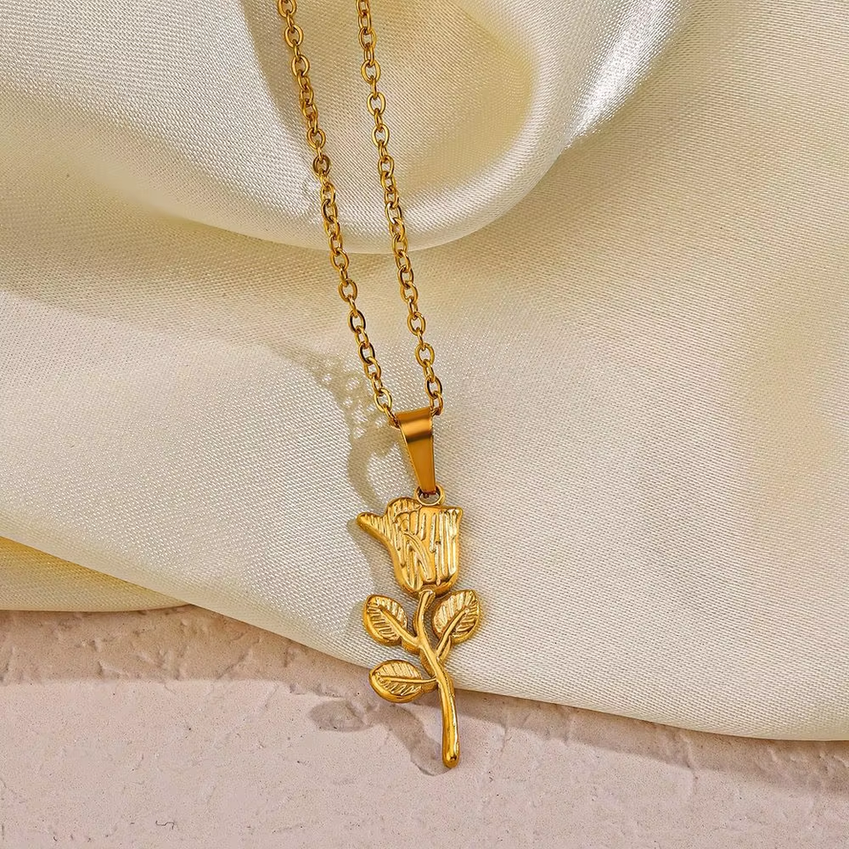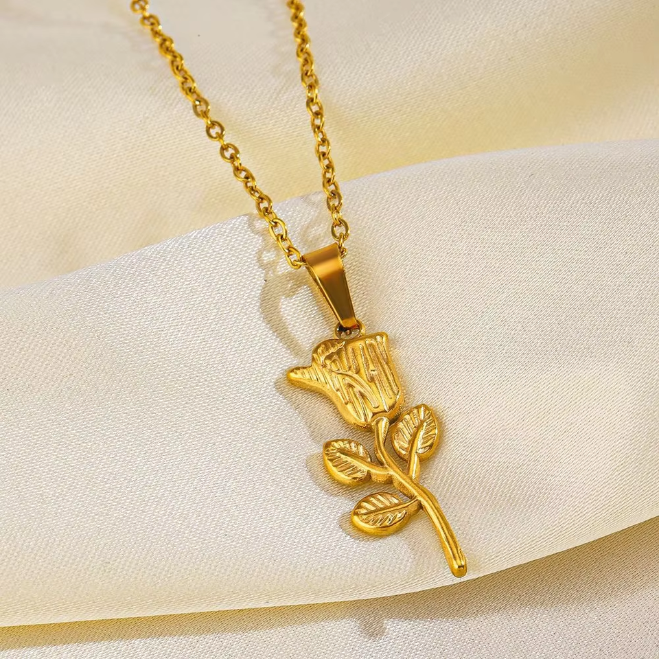 สร้อยคอจี้กุหลาบแบบมินิมอลลิสต์สร้อยคอสแตนเลสสตีลวินเทจร้อยสวยกุหลาบ