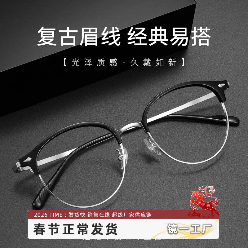 แว่นตาทรงกลมมินิมอลสำหรับผู้ชาย กรอบครึ่งวงกลม น้ำหนักเบาพิเศษ 18243 แว่นตา Danyang Optical
