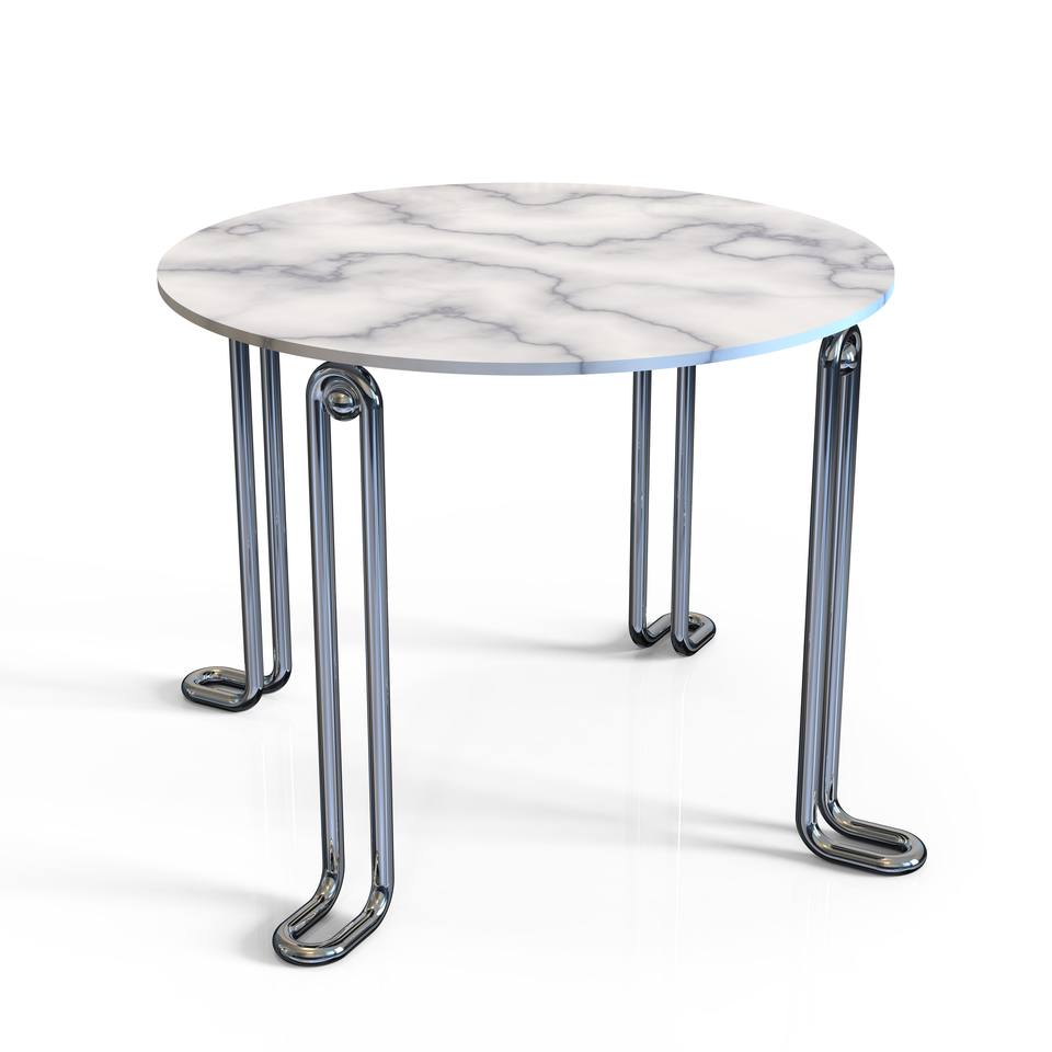 โต๊ะกาแฟทรงกลมโลหะแบบมินิมอล ทนทาน พร้อมขาโลหะโครเมียม สำหรับห้องนั่งเล่นสมัยใหม่ เฟอร์นิเจอร์อพาร์ทเมนต์