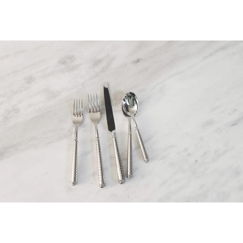 ชุดมีดเงินแบบมินิมอลที่มีด้ามจับดีไซน์หรูหราทำจากสเตนเลสสตีลสำหรับรับประทานอาหารที่ทันสมัยบ้านใช้บนโต๊ะในครัว