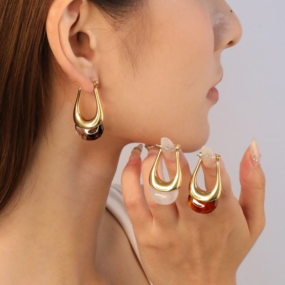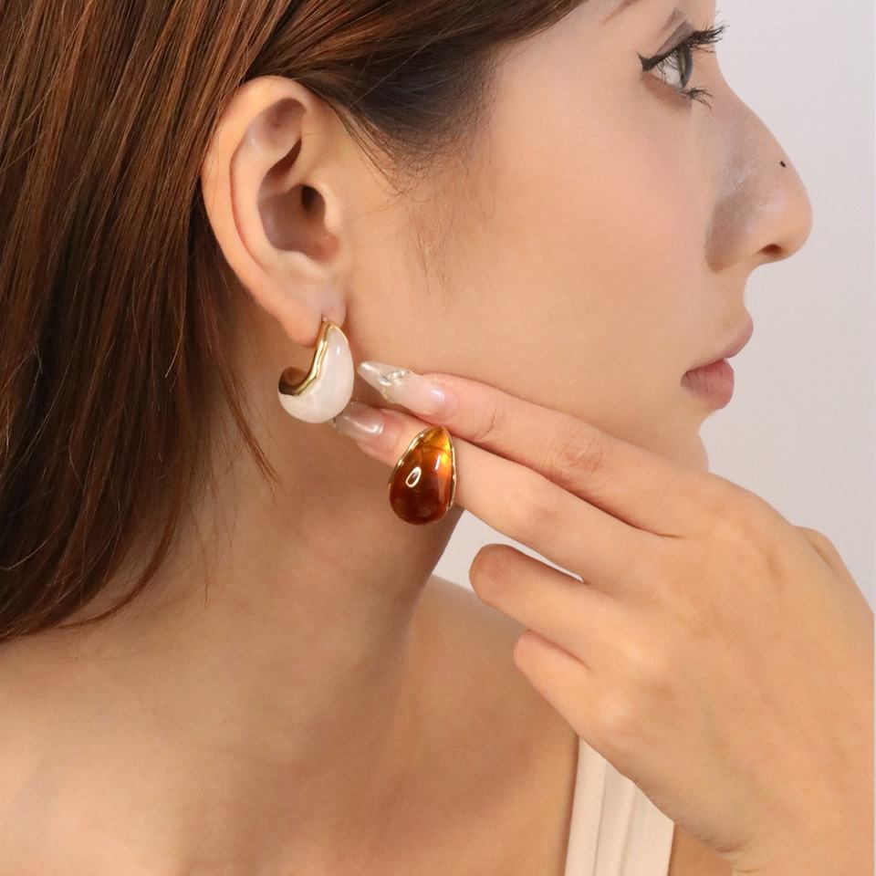 ต่างหูห่วงเรียบง่ายสไตล์มินิมอล รูปทรงเรขาคณิต สีสันสดใส ทำจากเรซิ่นและสแตนเลสสตีล ชุบทอง 18K PVD สำหรับผู้หญิง
