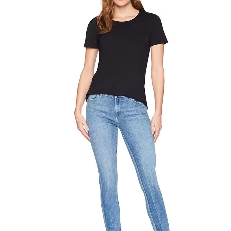เสื้อยืดคอกลมสีดำเรียบเข้ารูปเรียบง่ายสำหรับสตรีสำหรับสวมใส่สบายๆหรือแนวแอธเลชเชอร์พร้อมสำหรับสั่งซื้อจำนวนมากในอัตราขายส่ง