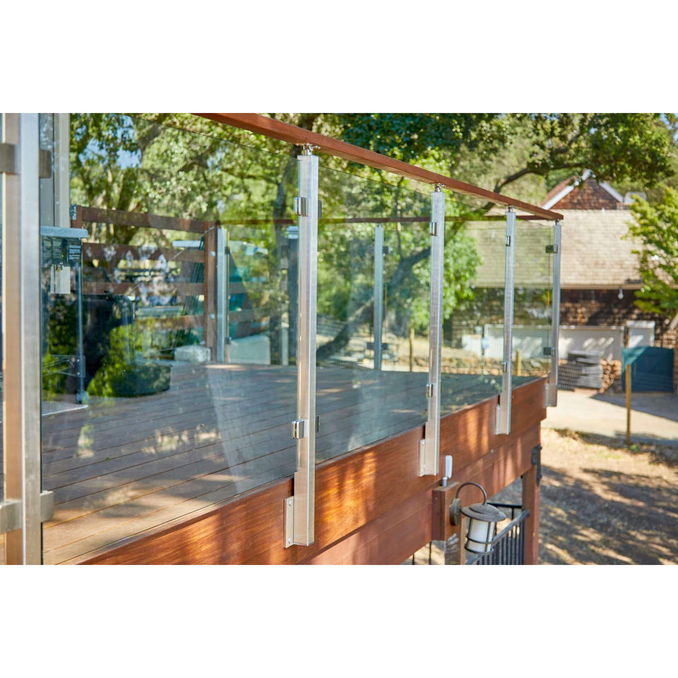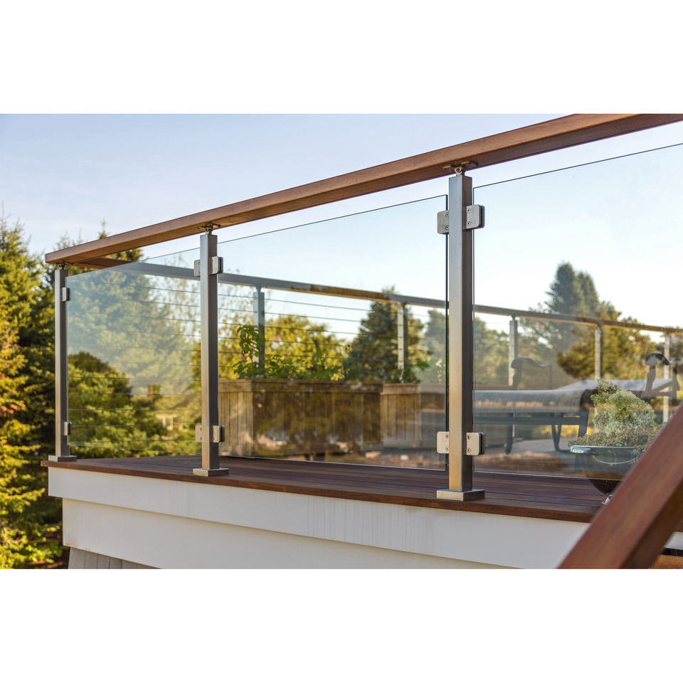 ราวกันตกกระจกแบบมินิมอลบางเฉียบสำหรับระเบียงและลานบ้าน กระจกนิรภัยแบบมองเห็นได้รอบด้าน พร้อมเสาเหล็กสแตนเลสขัดเงา