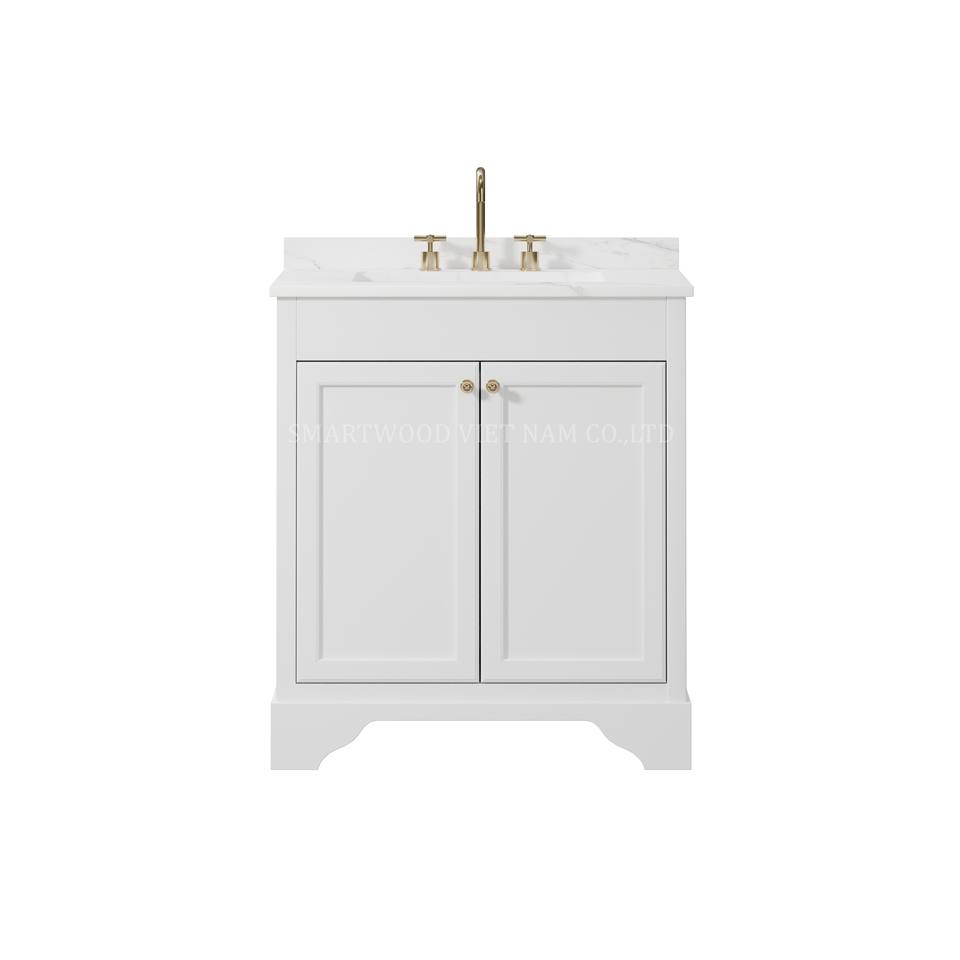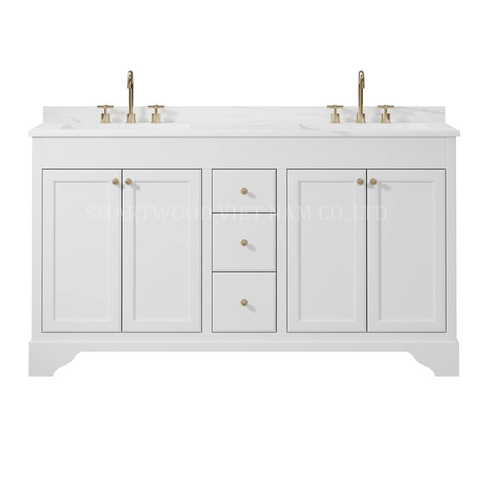 สมาร์ททวูดแบบเรียบง่ายโต๊ะเครื่องแป้งในห้องน้ำสไตล์อเมริกันพร้อมอ่างล้างจานใต้ภูเขาสำหรับโรงแรม