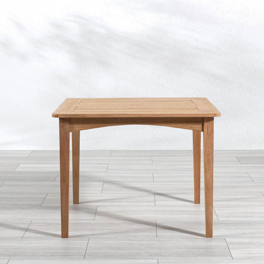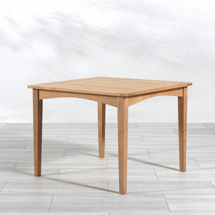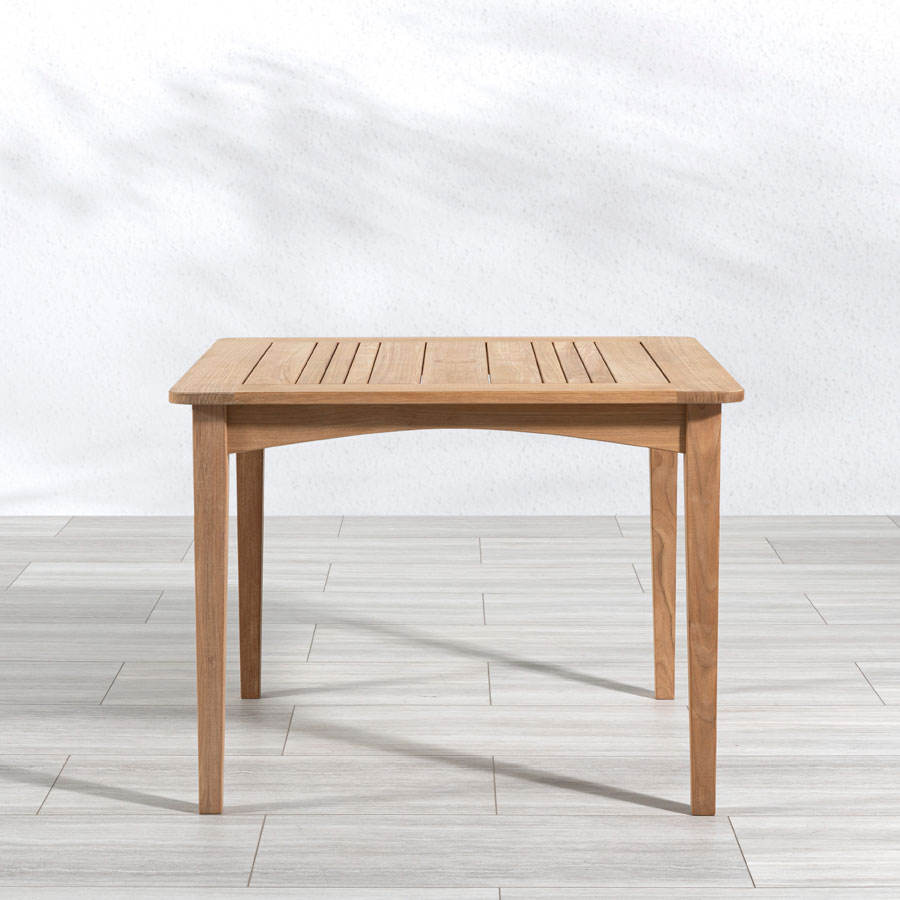 โต๊ะรับประทานอาหารกลางแจ้งไม้สักแท้ดีไซน์เรียบง่ายรูปทรงสี่เหลี่ยมผืนผ้า – ผู้จัดจำหน่ายเฟอร์นิเจอร์สำหรับรีสอร์ทและธุรกิจบริการการท่องเที่ยว