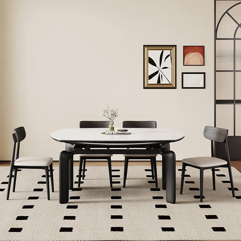 โต๊ะอาหารไม้เนื้อแข็งทรงวงรี ดีไซน์ขาแบบขาช้าง สำหรับใช้ในบ้าน