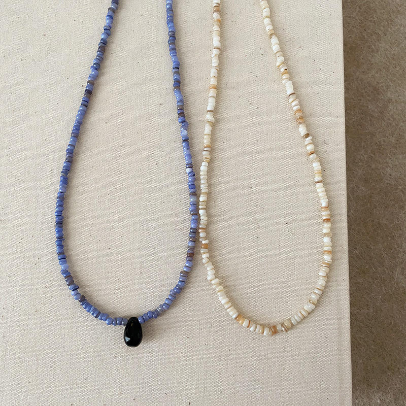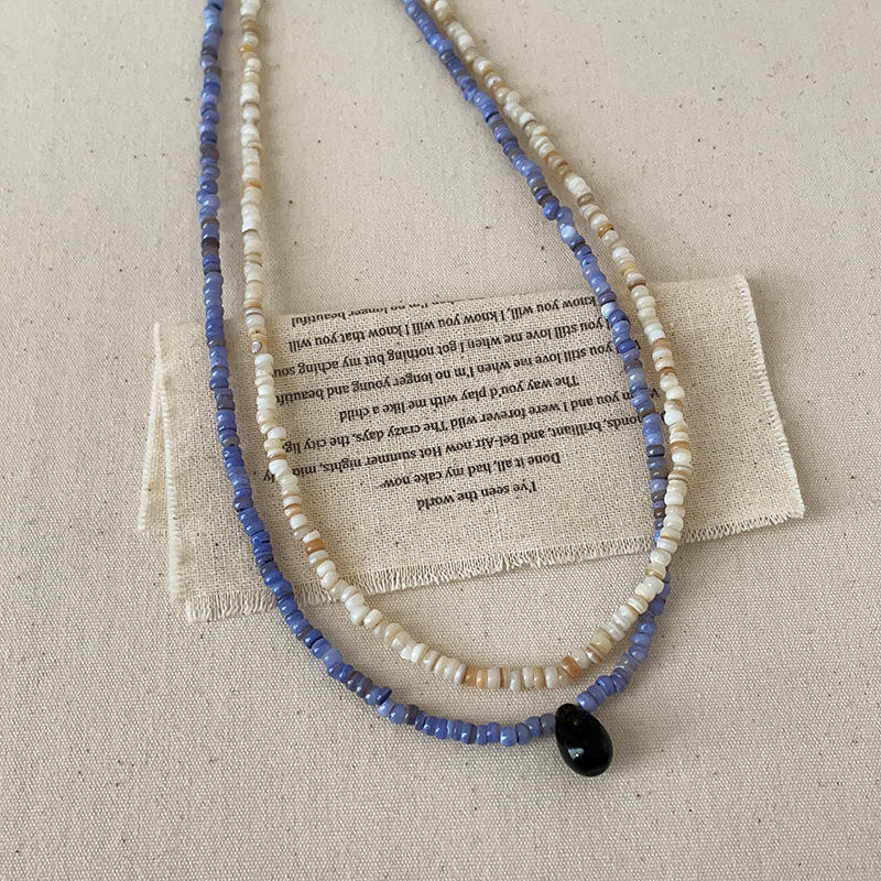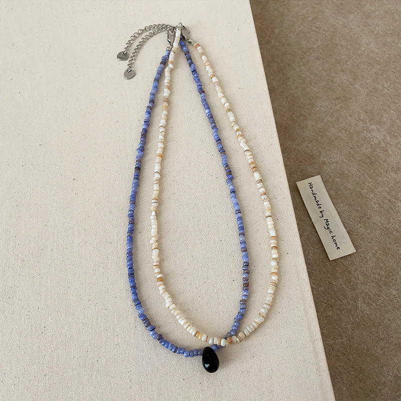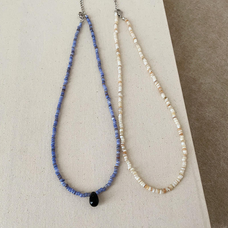 สร้อยคอลูกปัด lapis Lazuli สแตนเลสแบบมินิมอลสำหรับผู้หญิงสายโซ่กันเสื่อมเสียพร้อมรูปแบบลูกบอลสำหรับเป็นของขวัญ