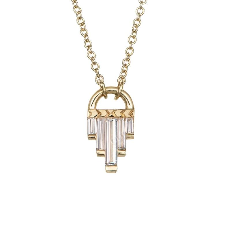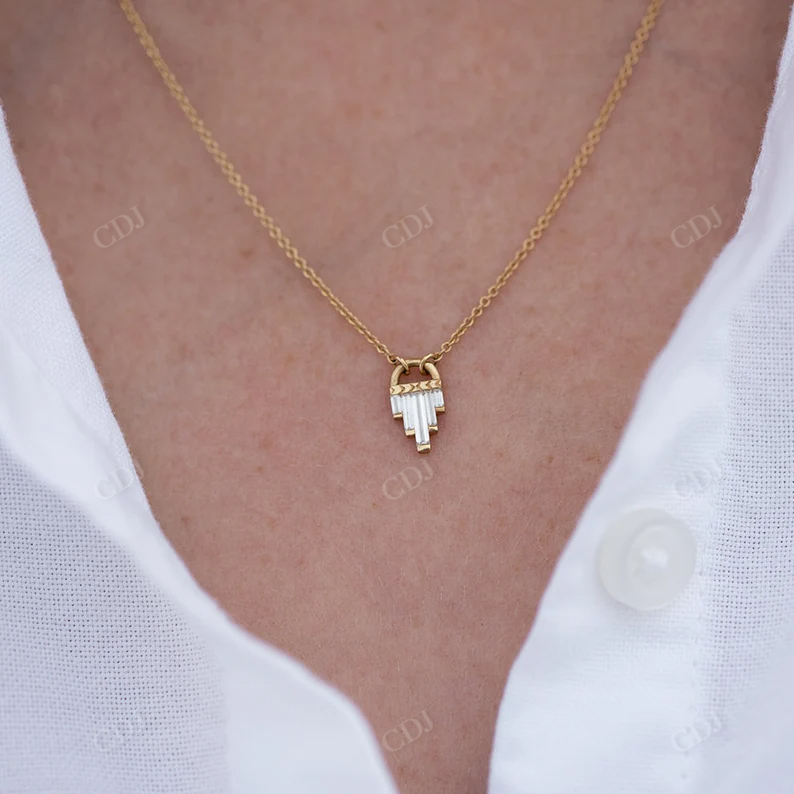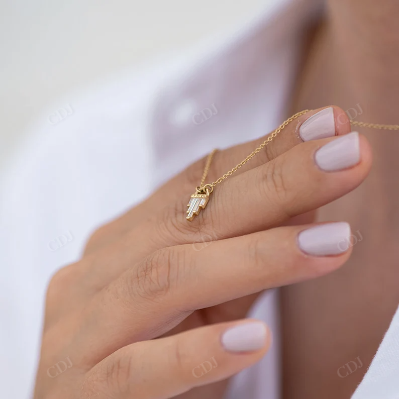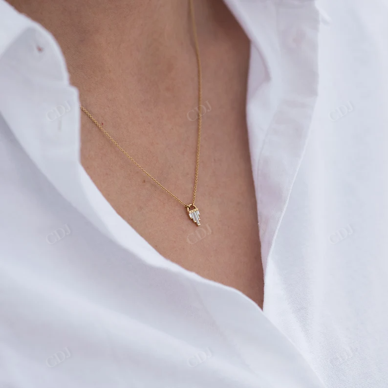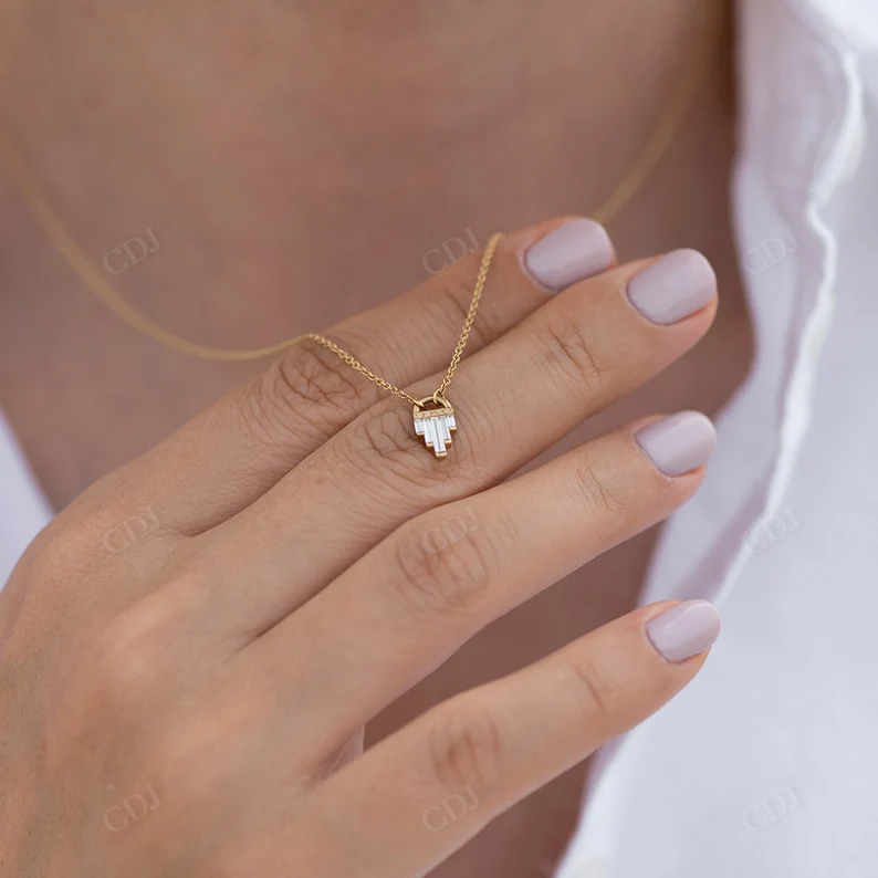 Minimalist Style Fine Jewelry Step Baguette Cut Moissanite 18K Gold Plated Pendant Necklace Women Custom Jewelry VVS Clarity