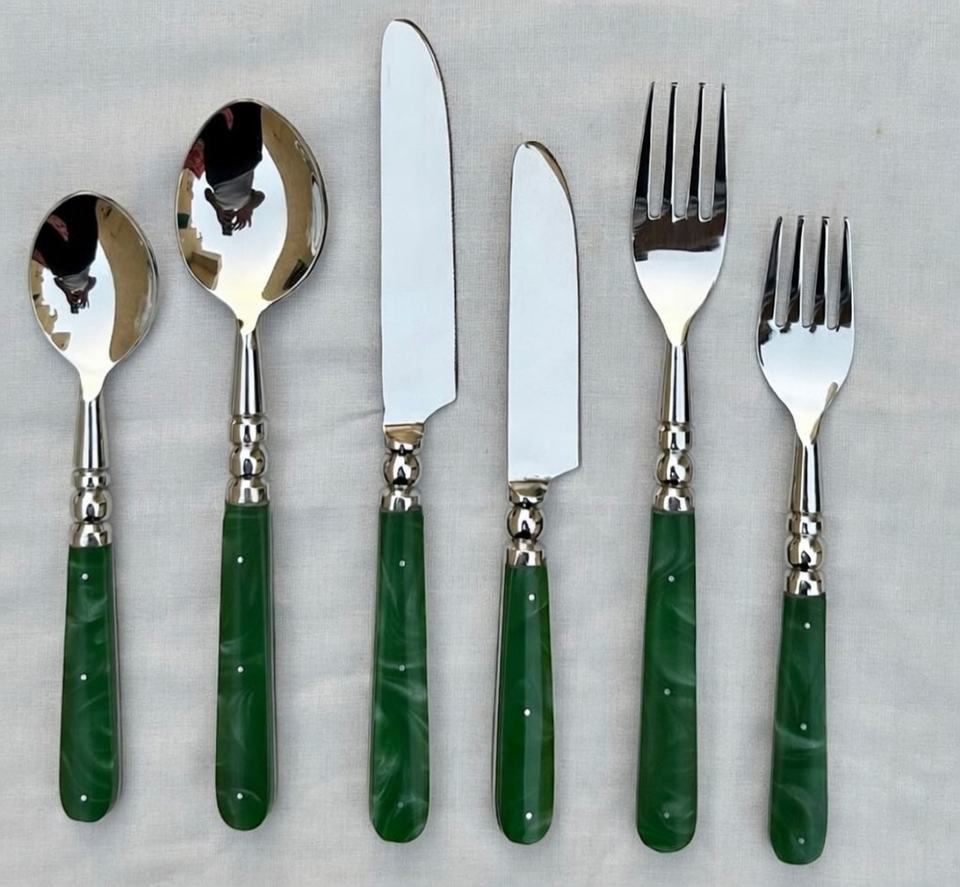 ชุดช้อนส้อมสไตล์มินิมอล เป็นมิตรกับสิ่งแวดล้อม ทนทาน ผลิตจากสแตนเลสสตีล 18/8 ขัดเงา ด้ามจับทำจากเรซิ่น ชุดอุปกรณ์รับประทานอาหาร