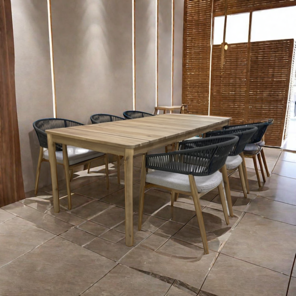 ชุดโต๊ะรับประทานอาหารไม้เนื้อแข็งสไตล์มินิมอลเฟอร์นิเจอร์ร้านอาหารที่จําเป็นผลิตในเวียดนามวัสดุไม้ที่ทนทาน