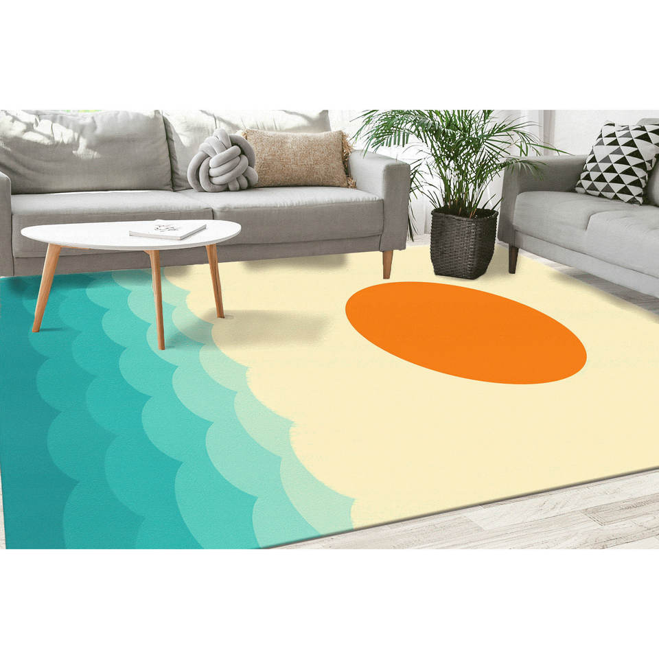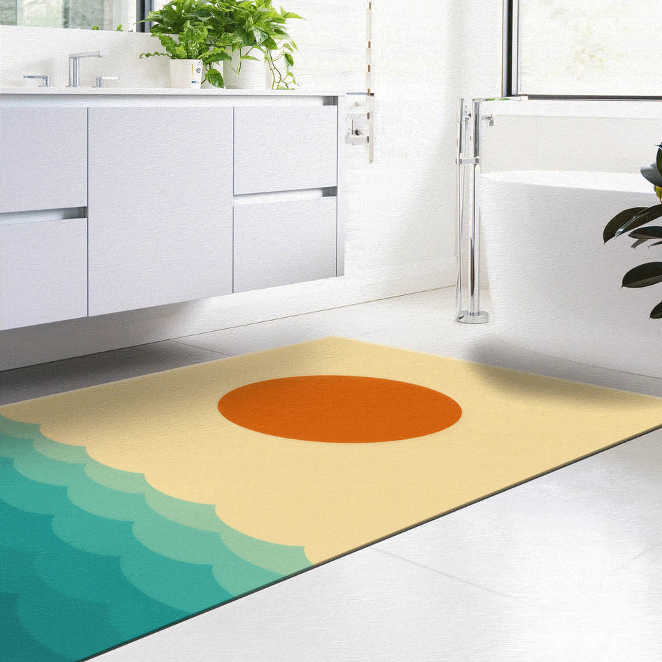 พรมลายภาพวาดพระอาทิตย์และทะเลสไตล์มินิมอล พรมลายวิวทิวทัศน์สมัยใหม่ พรมพิมพ์ลาย พรมขนนุ่ม